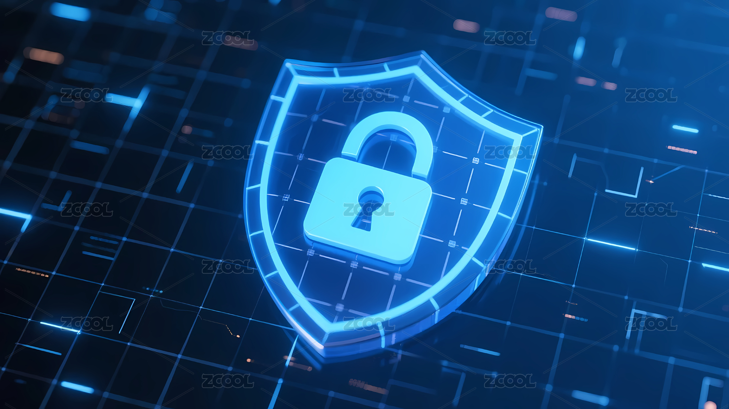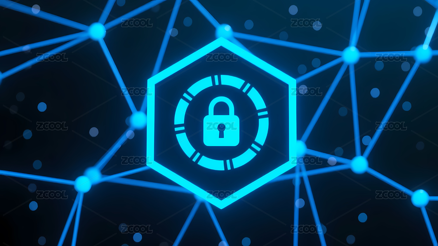 深蓝,科技,蓝色,光点,六边形,几何,发光,网络,锁形,安全