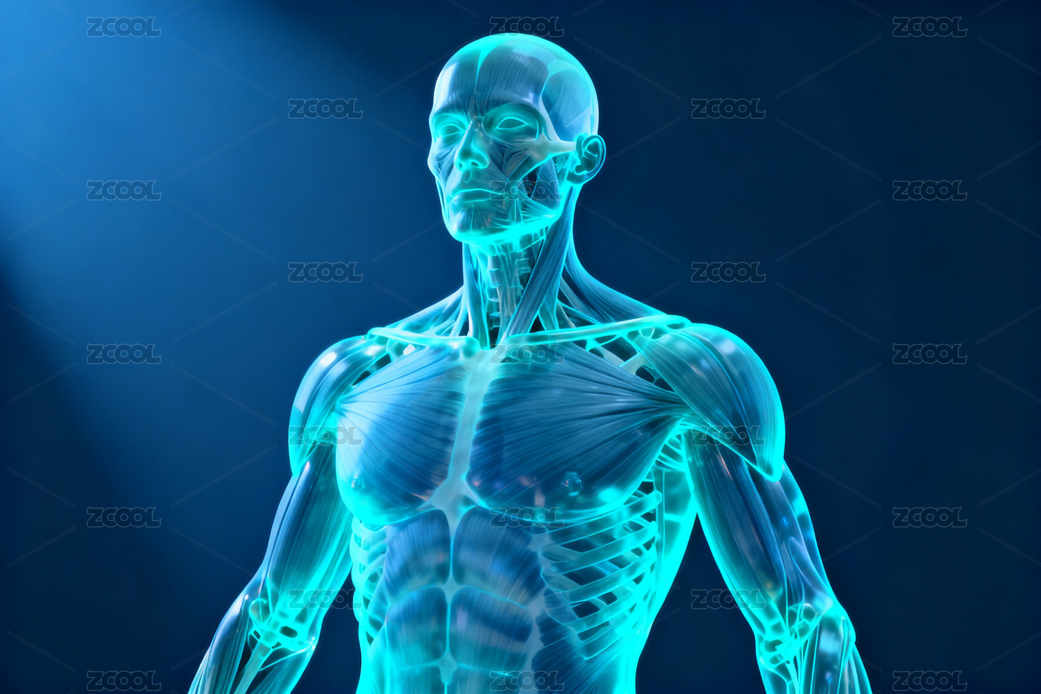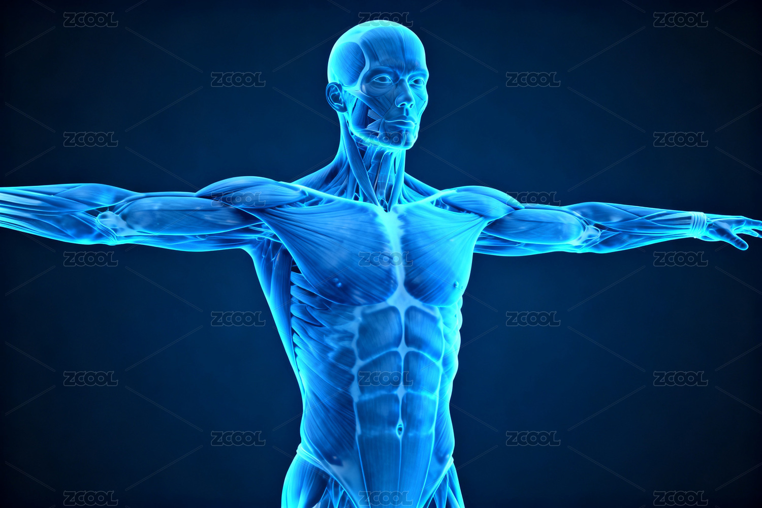 蓝色光影中的人体肌肉解剖图