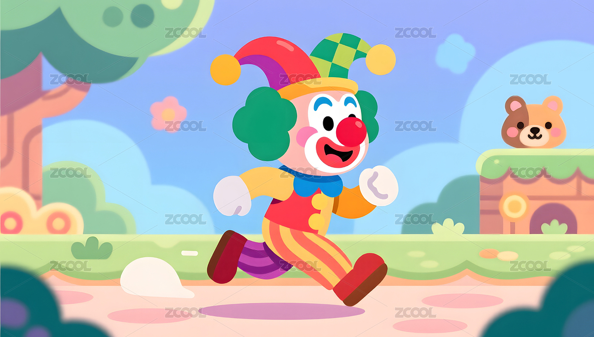 手绘卡通可爱的小丑插画
