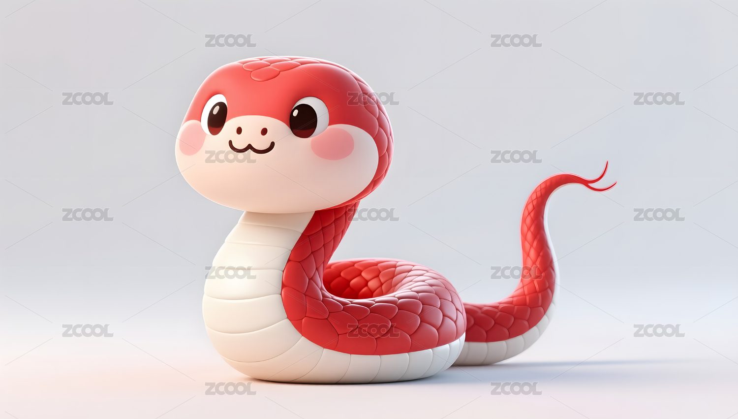 可爱蛇年动物IP的3D插画