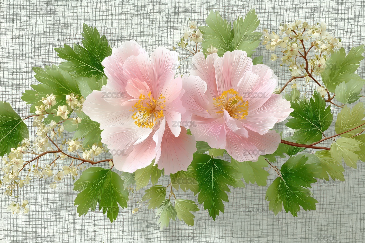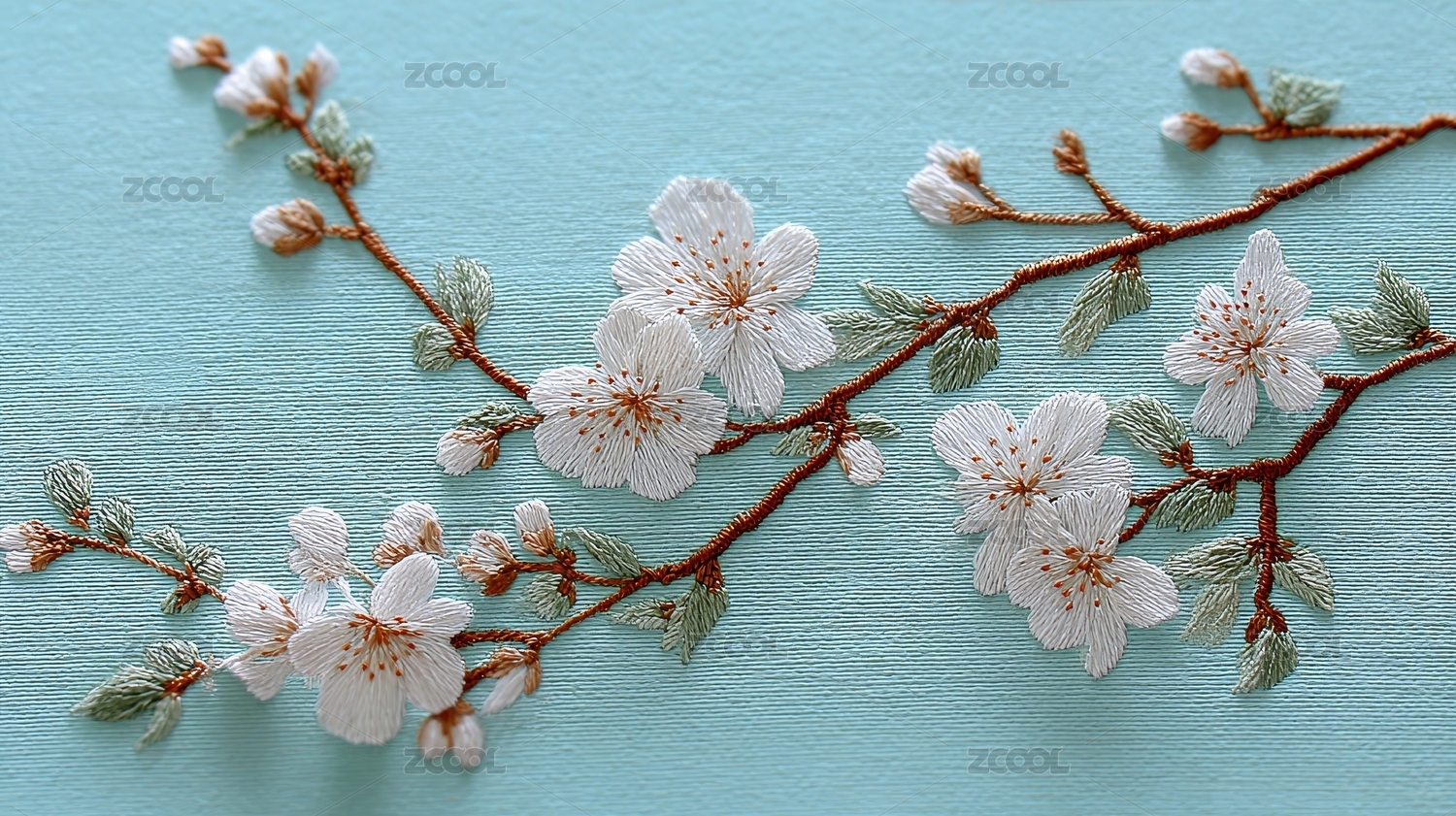 花朵,绿叶,艺术,白色,刺绣,细节,传统,纹理,布料,装饰