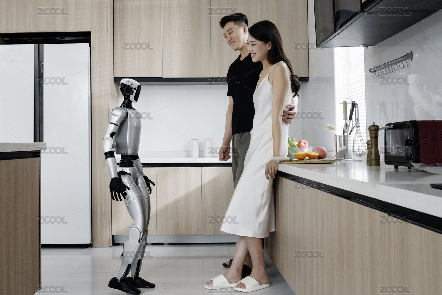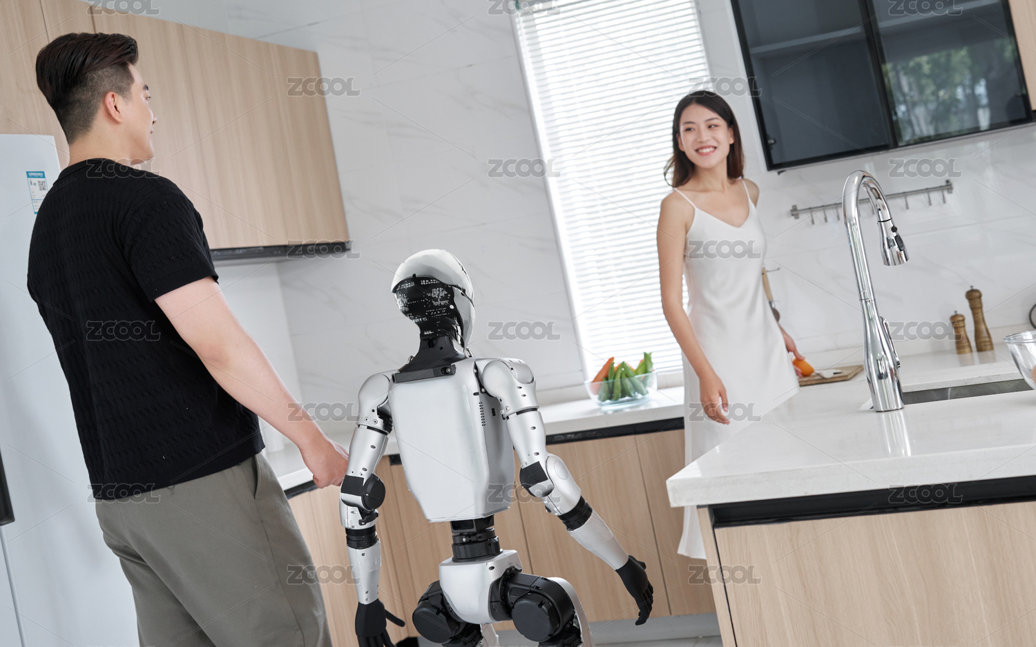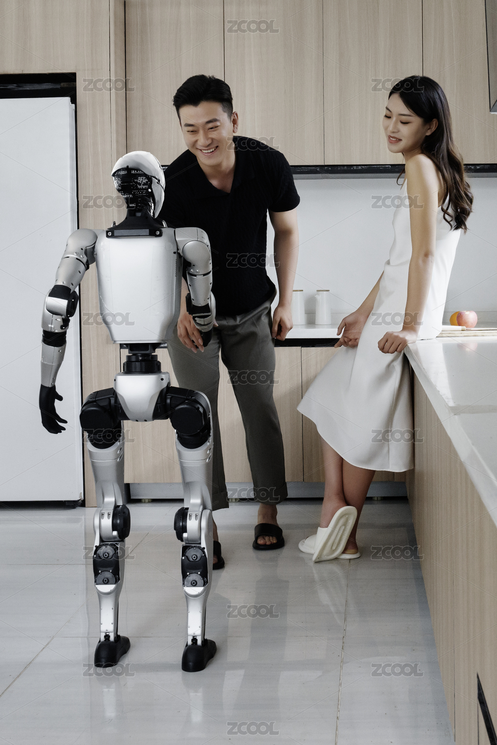 智能设备,家务劳动,科技生活,家庭场景,互动合作,未来家居,智能,未来,人形机器人,科技产品