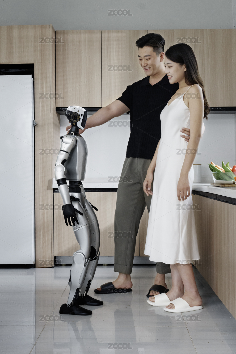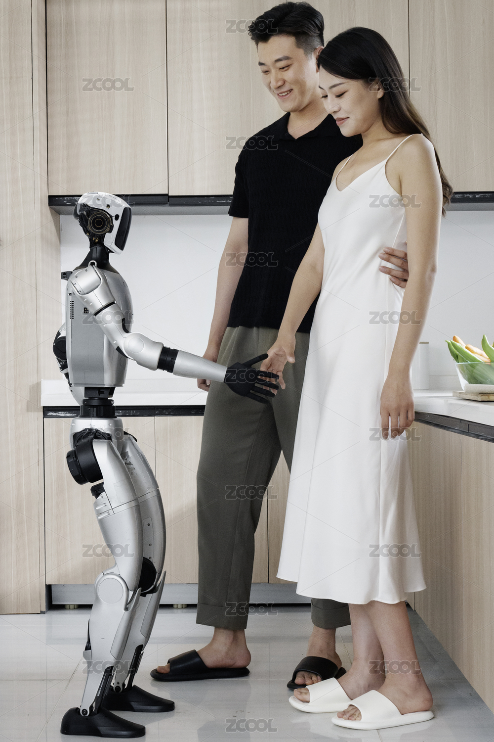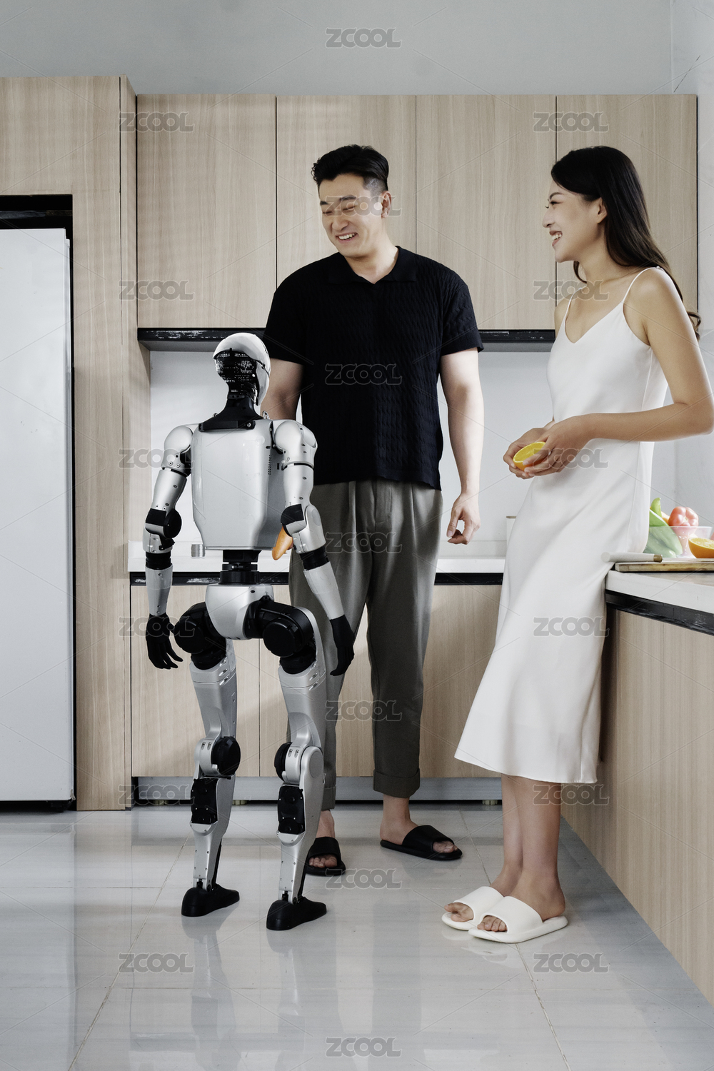 智能设备,家务劳动,科技生活,家庭场景,互动合作,未来家居,智能,未来,人形机器人,科技产品