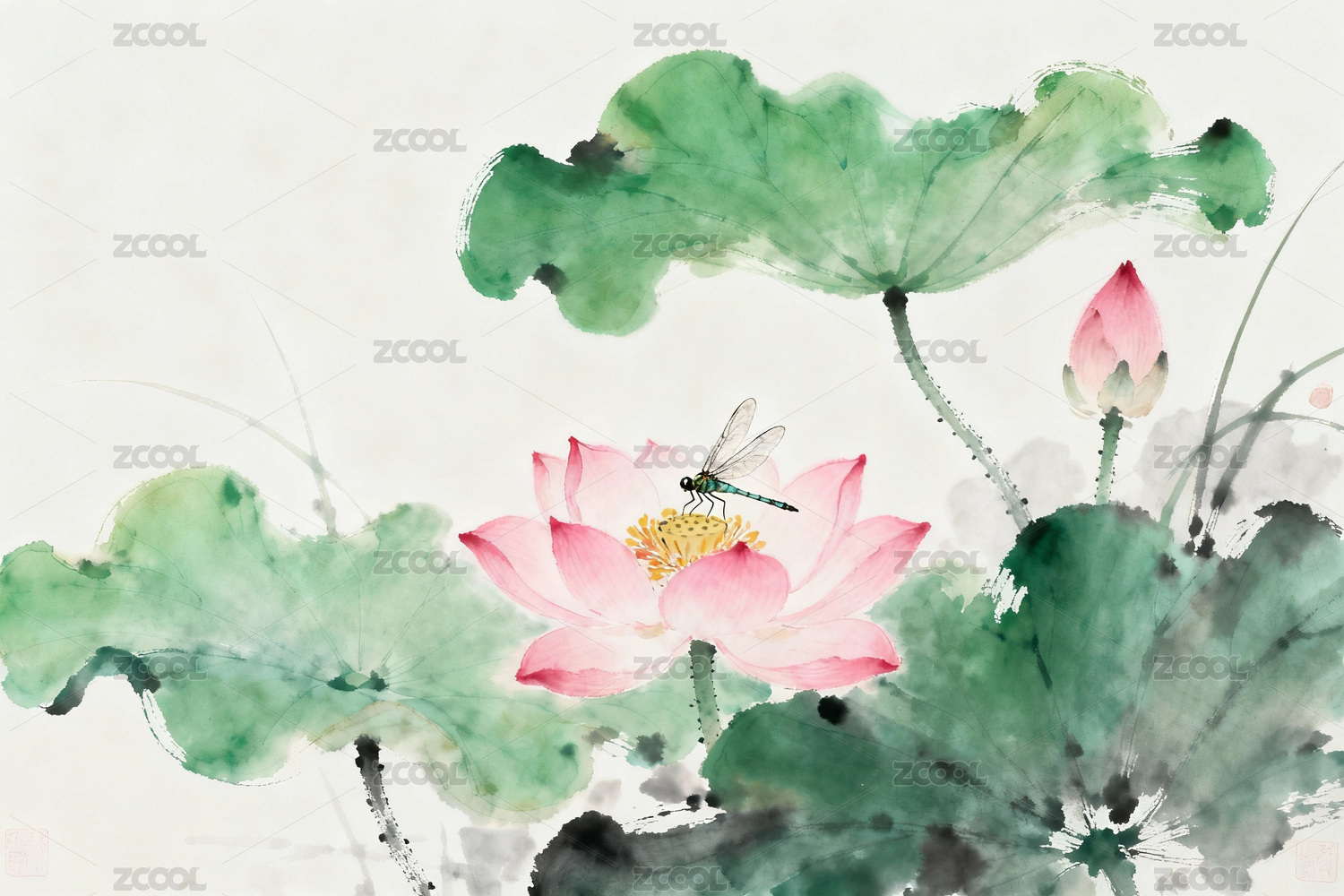 荷花,蜻蜓,荷叶,水墨画,插画,中式,艺术,自然,风景,传统