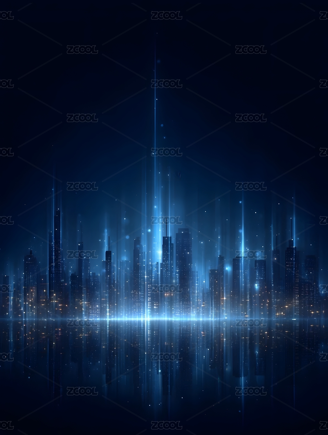 科技,高楼,夜景,未来,建筑,光影,水面,反射,线条