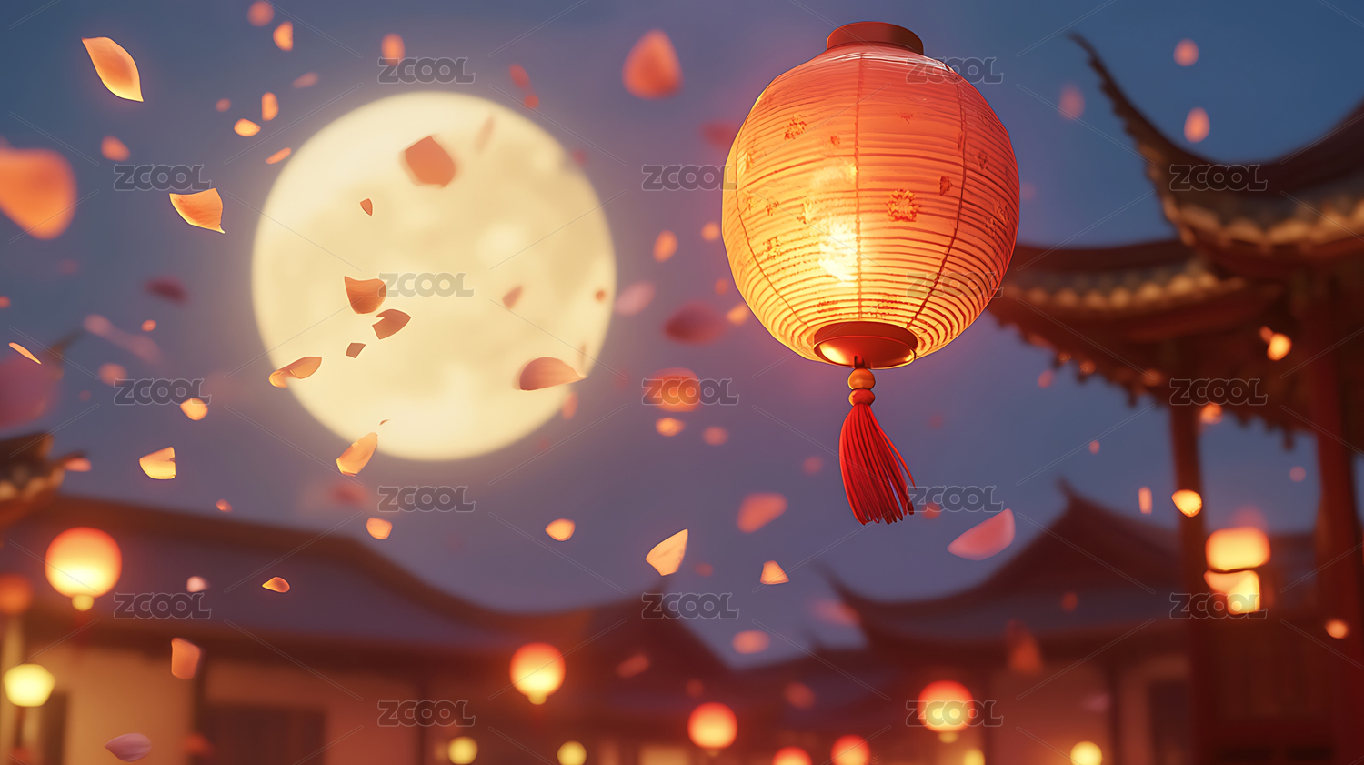 中秋节,孔明灯,插画,节日,夜晚,月亮,中秋,背景,团圆,传统
