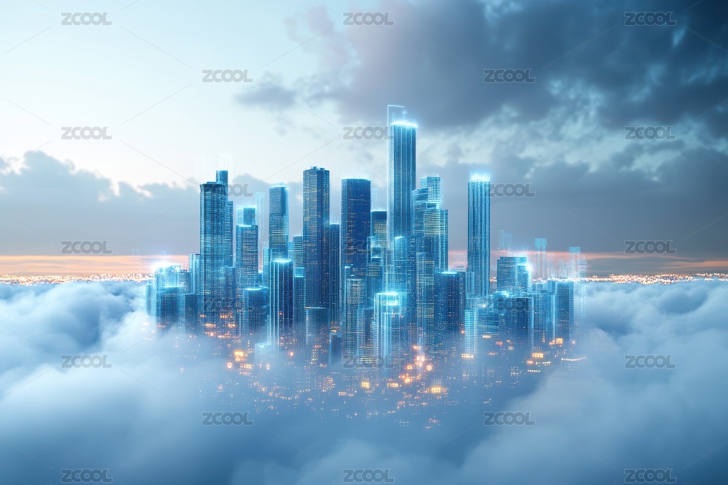 未来虚拟城市在云端的倒影
