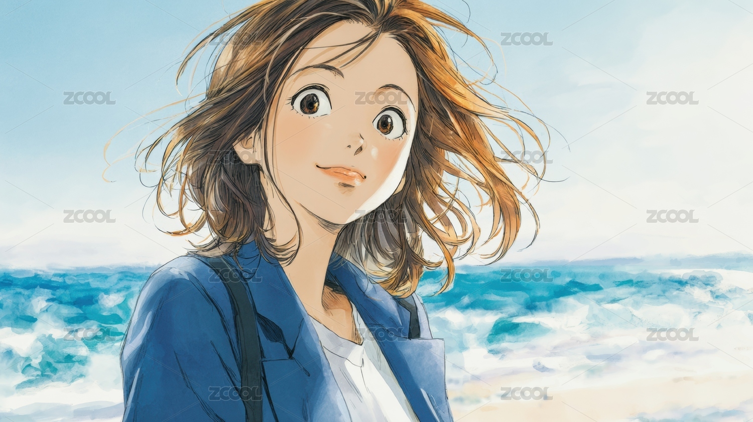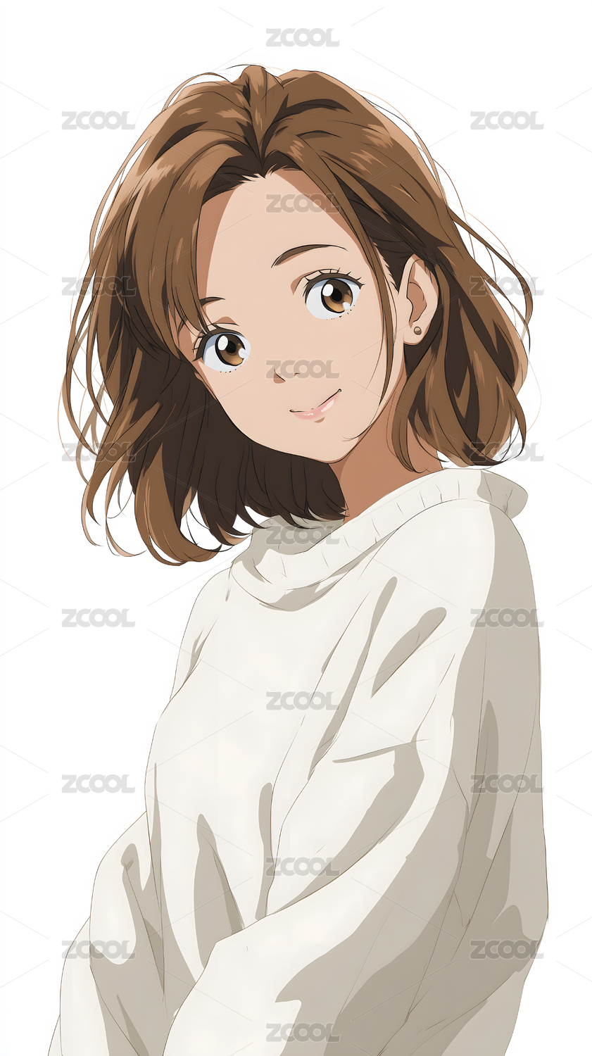 复古日漫人物半身人像穿着白衬衣抬头向上看