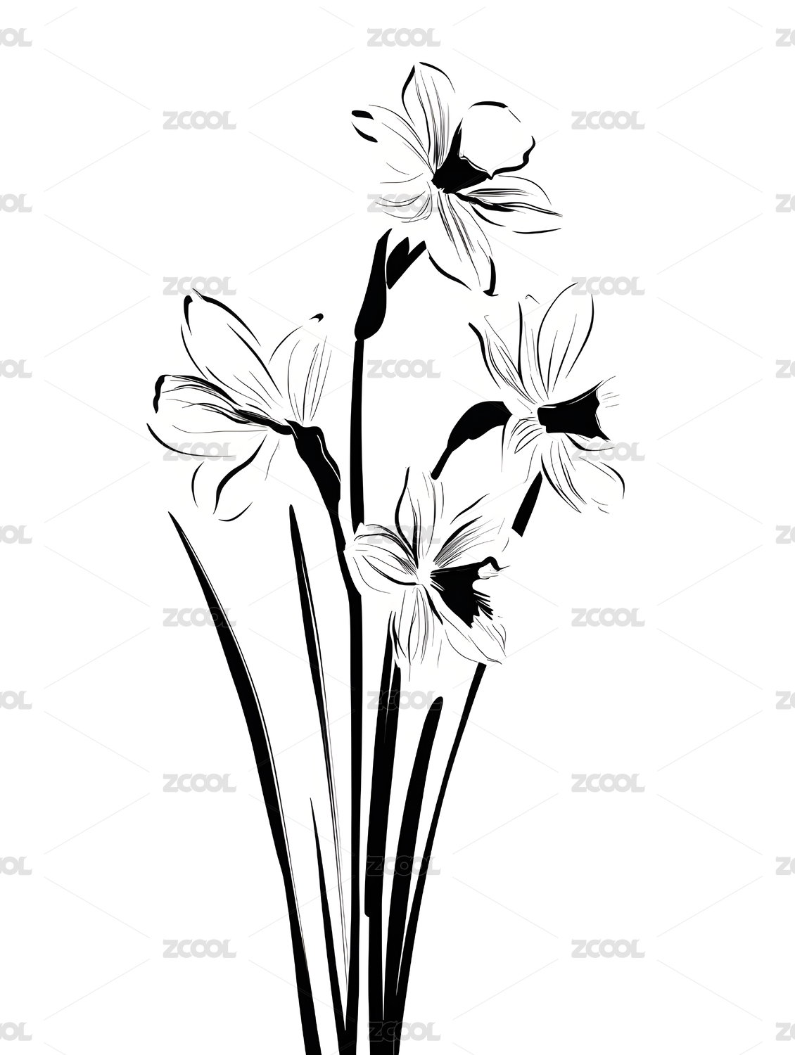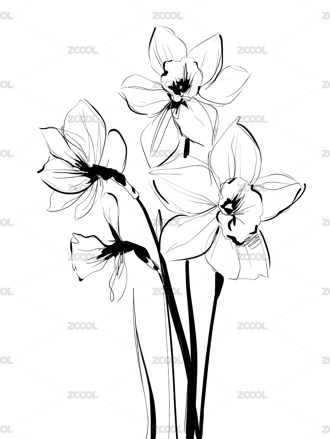 素描水仙花束清新简约风格