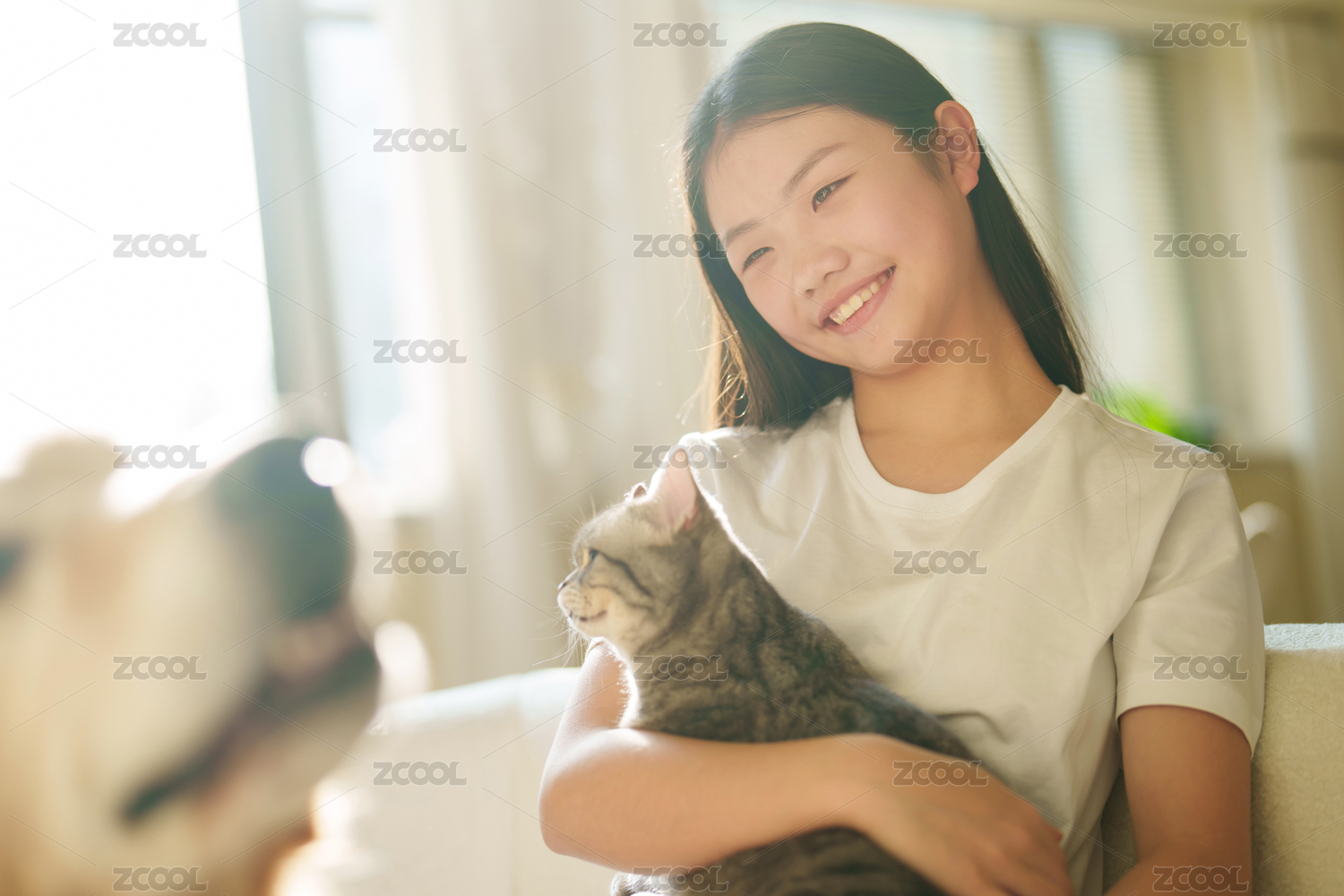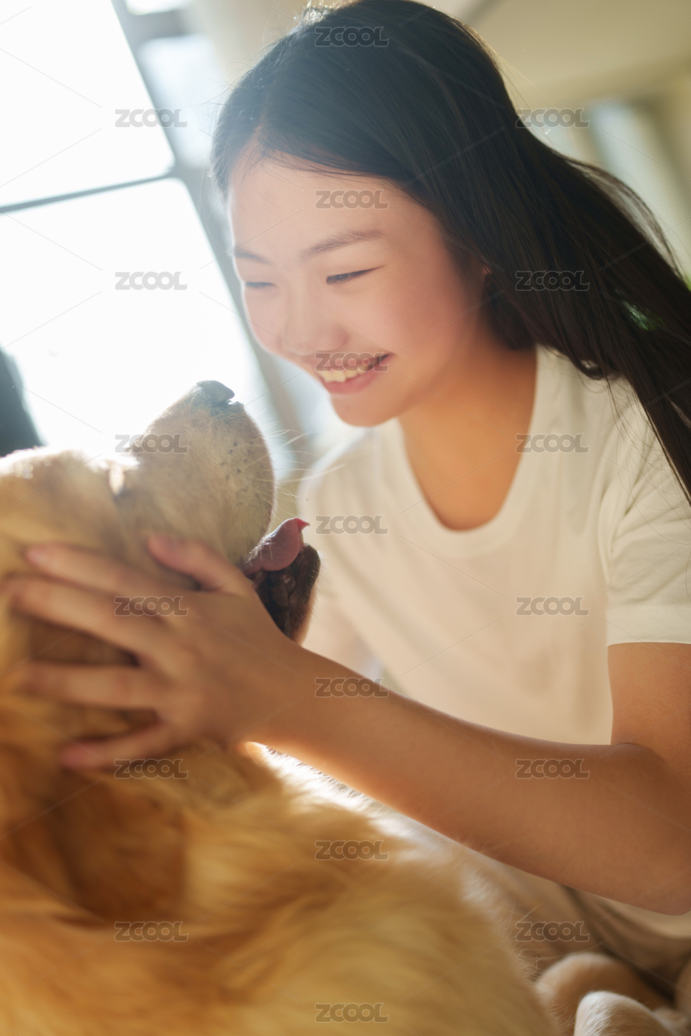 少女,陪伴,女孩,女人,宠物,动物,中国,幸福,一个人,关爱