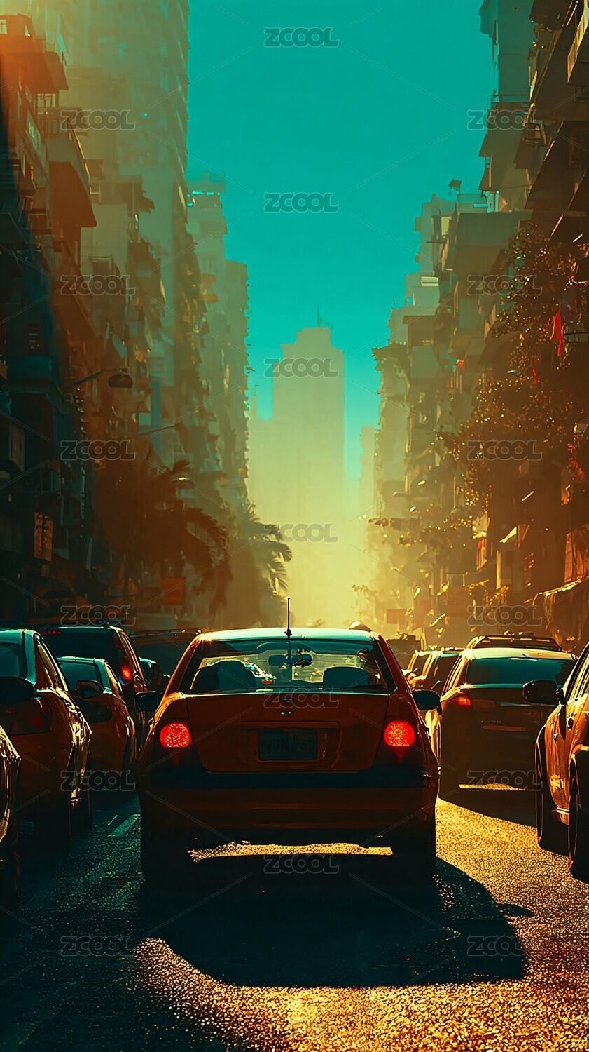 在夕阳的余晖中驾驶车辆踏上自由之旅