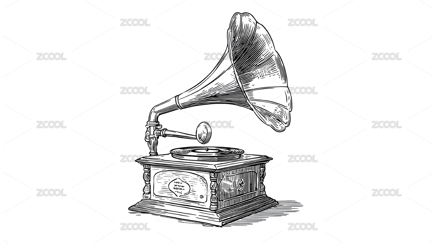 手绘留声机黑白复古风