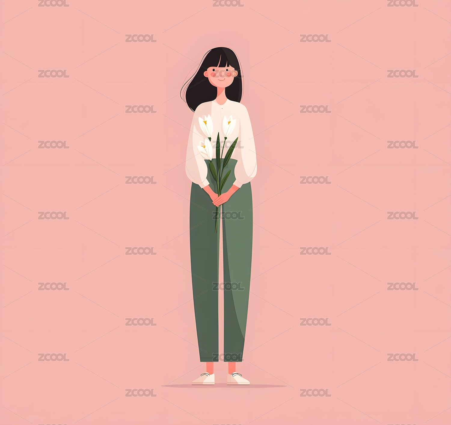 手捧百合花的女孩 简约温馨的粉色背景