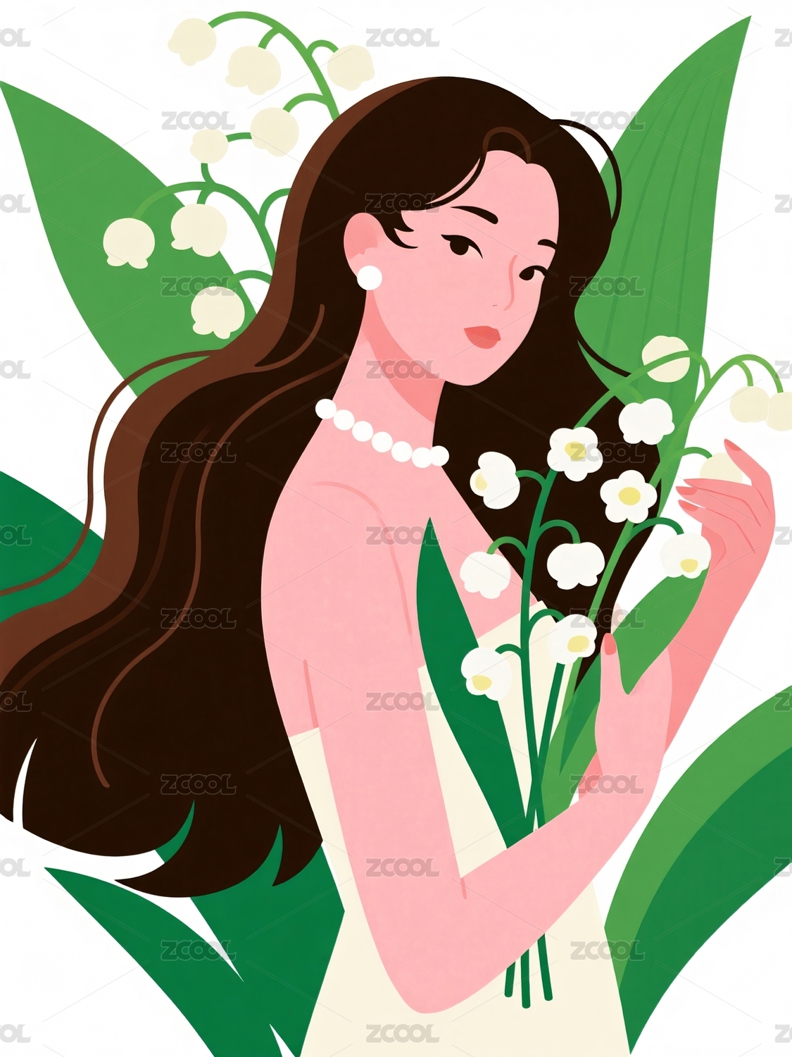 女子手捧铃兰花朵