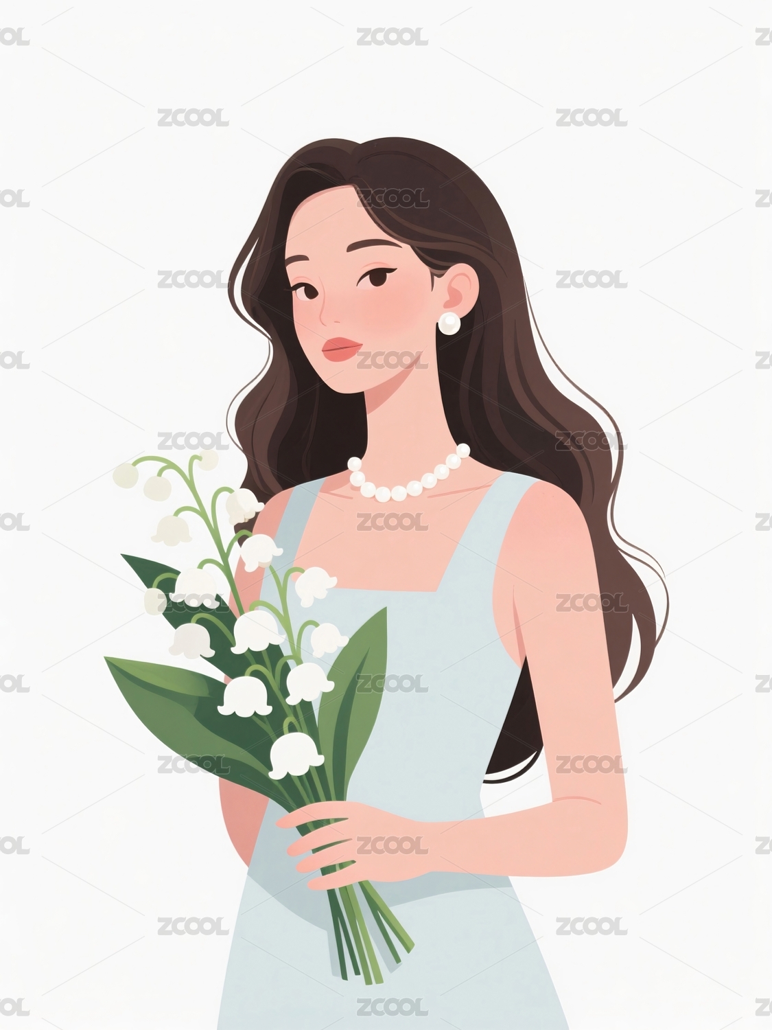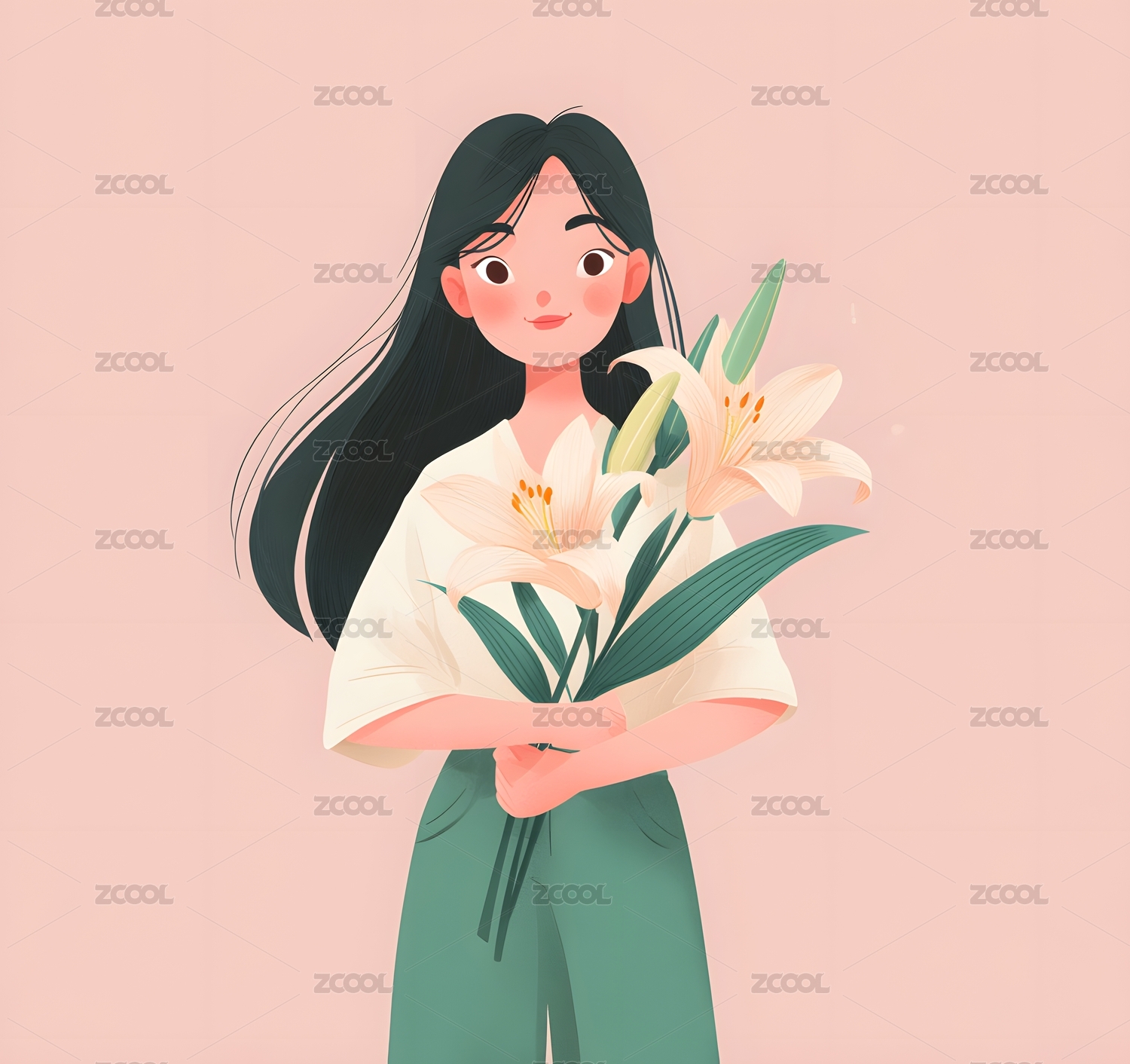 手捧百合花的女孩 纯真唯美插画