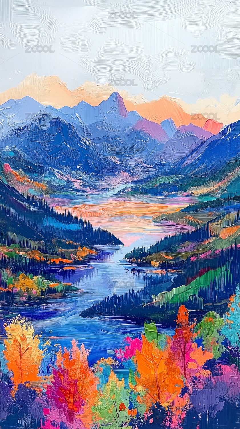 彩色山水风景油画