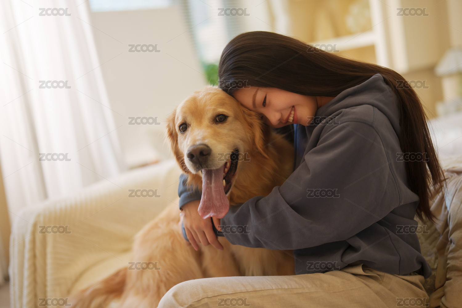 少女,陪伴,女孩,女人,宠物,动物,中国,幸福,一个人,关爱