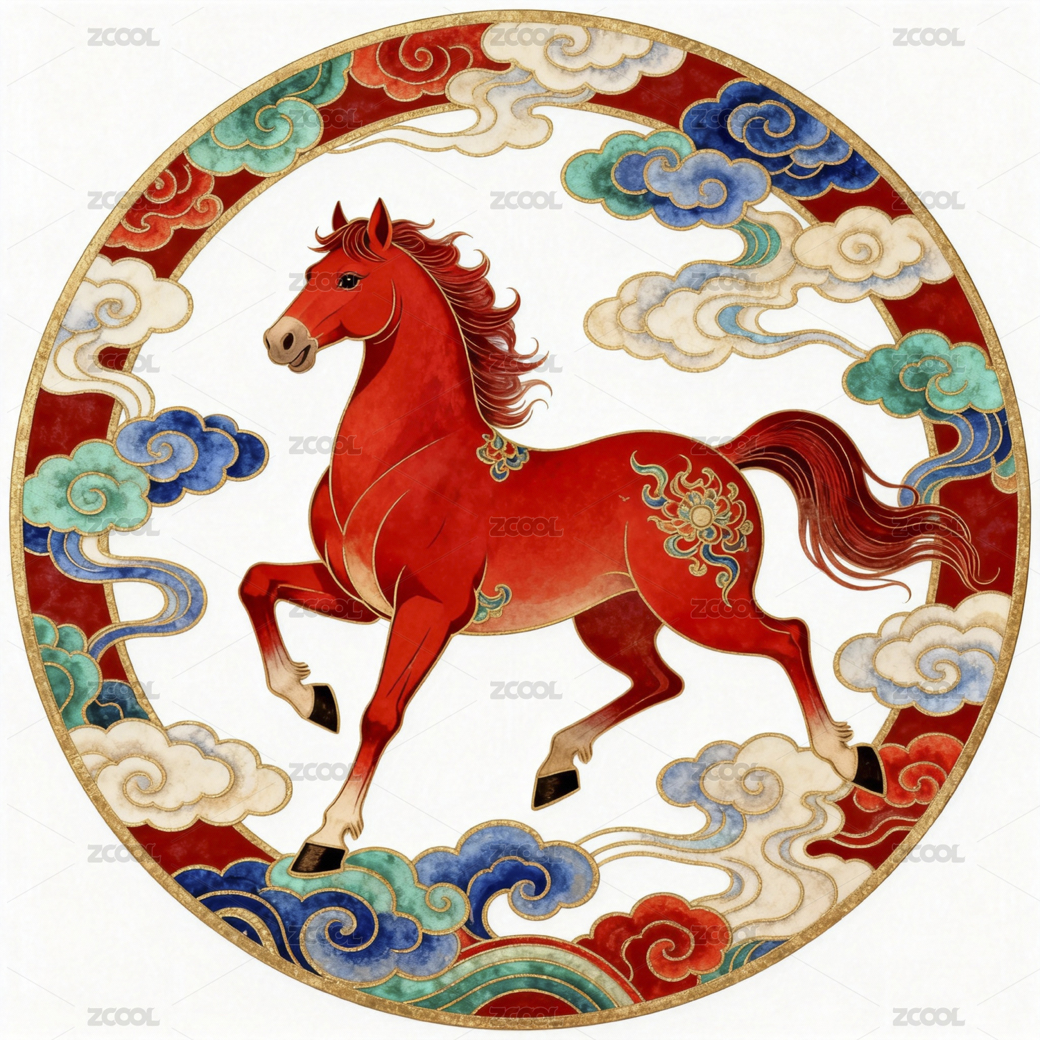 骏马,马匹,马,国潮,敦煌,插画,马年,奔腾,奔跑