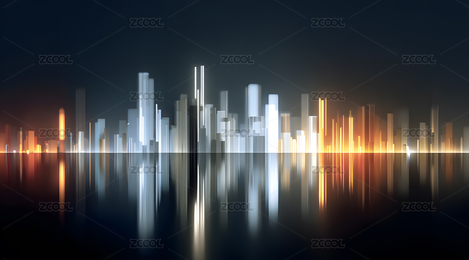 带曲线背景的科技城市夜景抽象剪影矢量插画