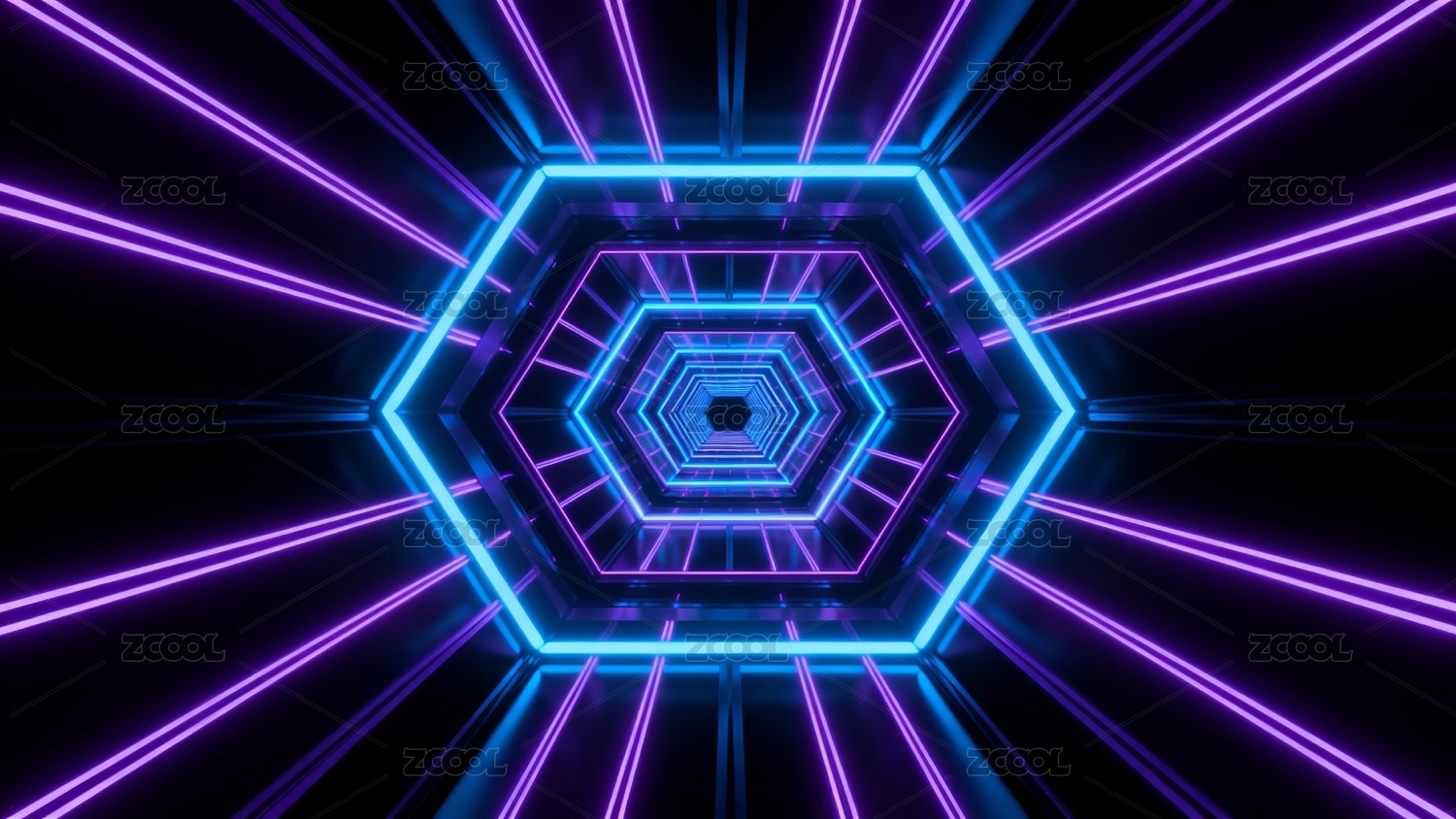 紫蓝霓虹六边形隧道