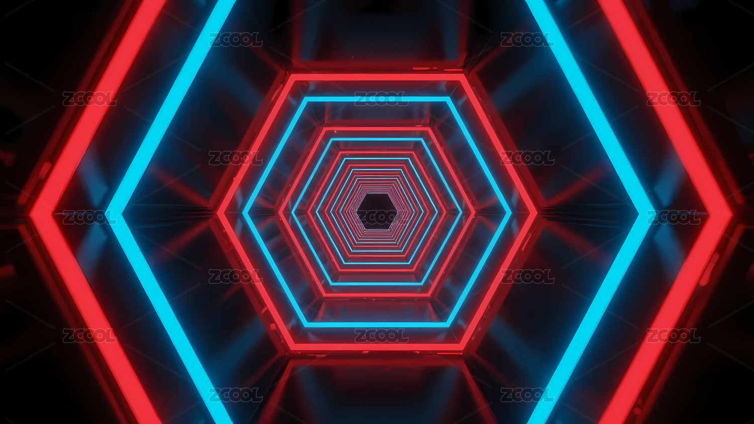 红蓝六边形霓虹隧道