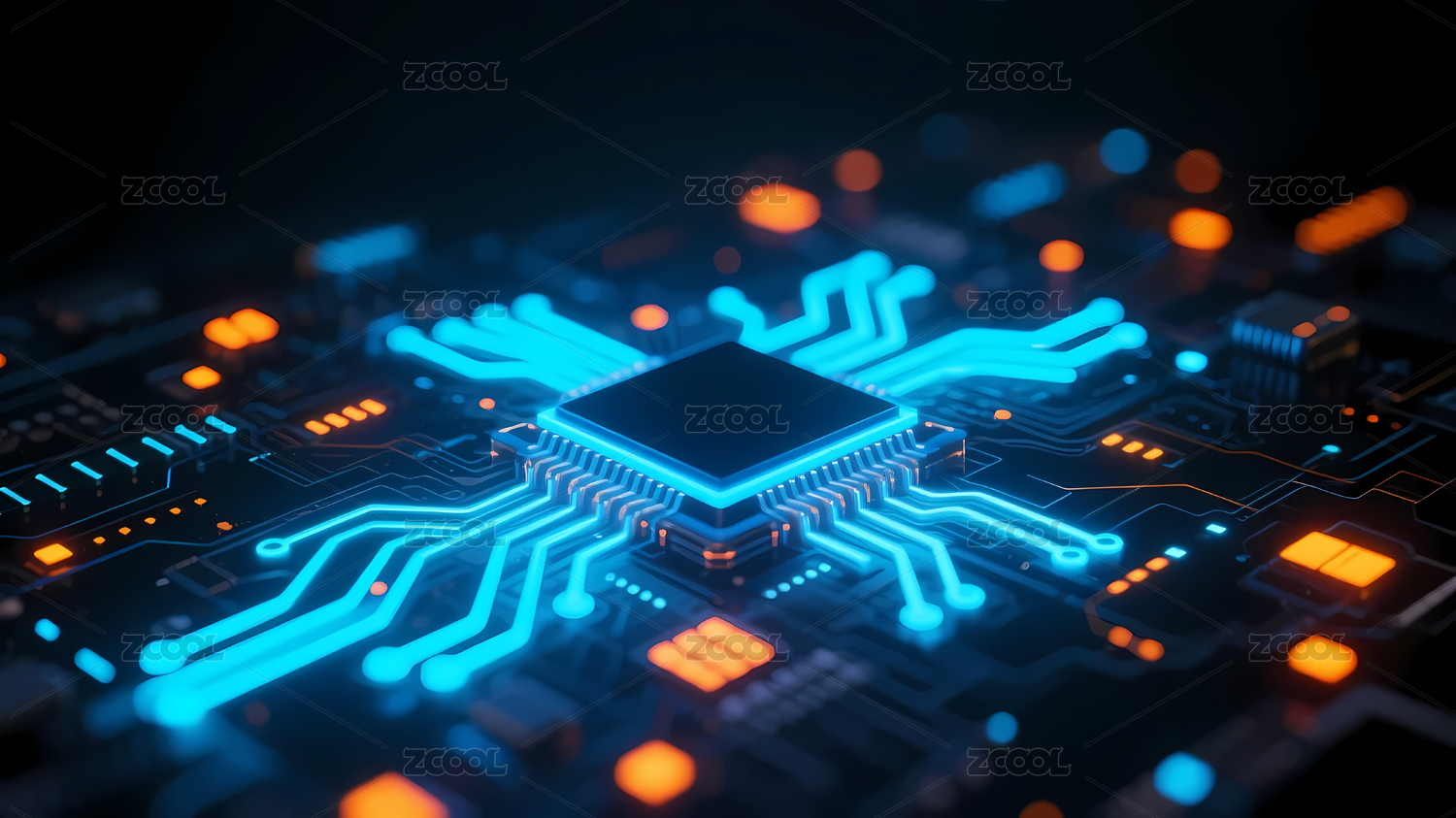 蓝色,光点,科技,未来,深色,设计,光线,中心,渐变,芯片