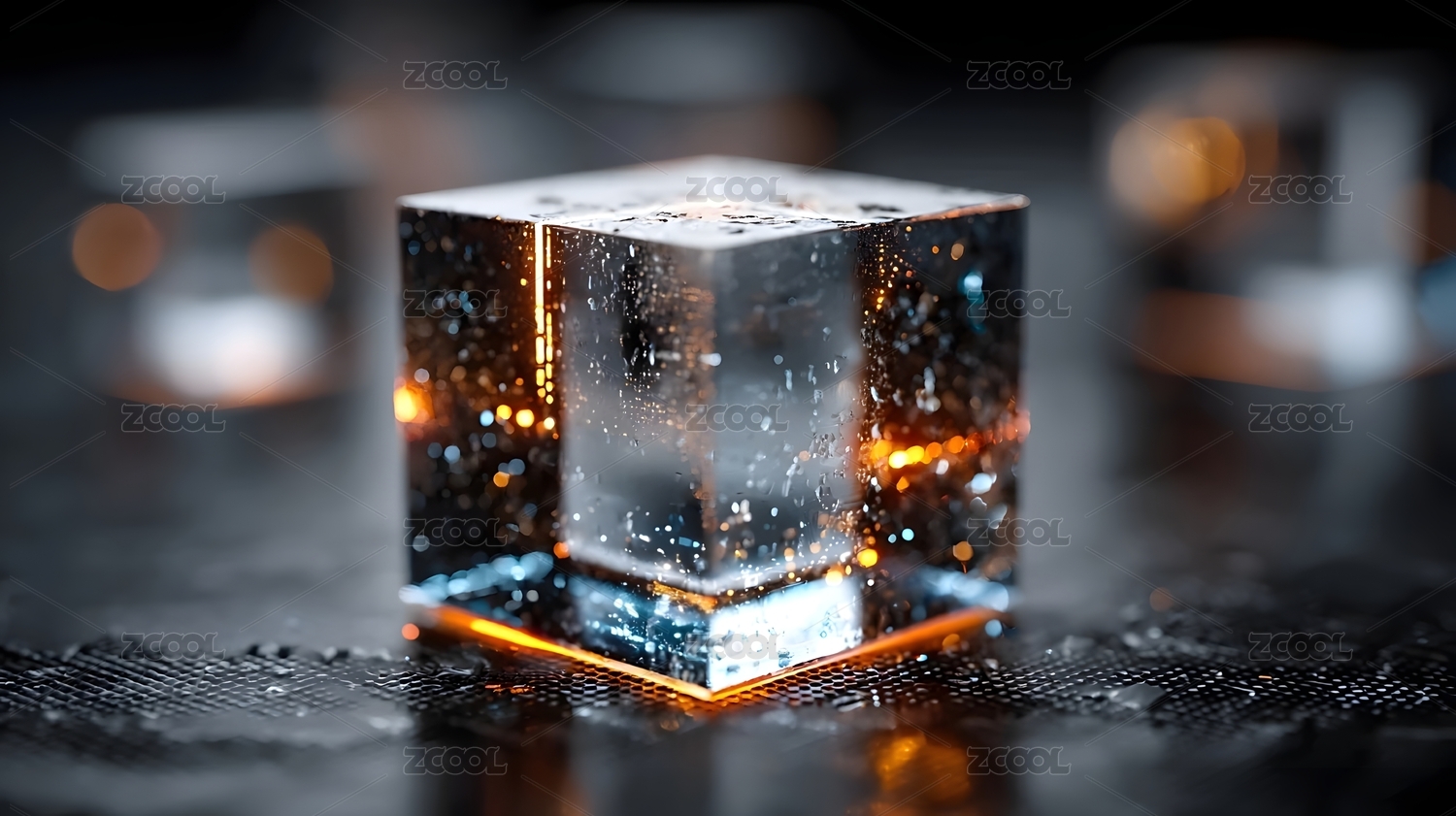 透明立方体橙色水面背景