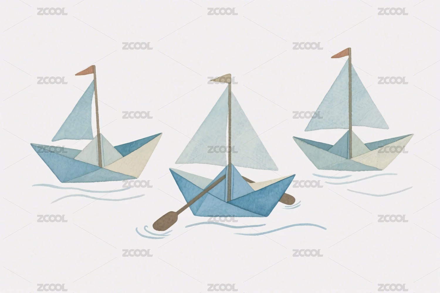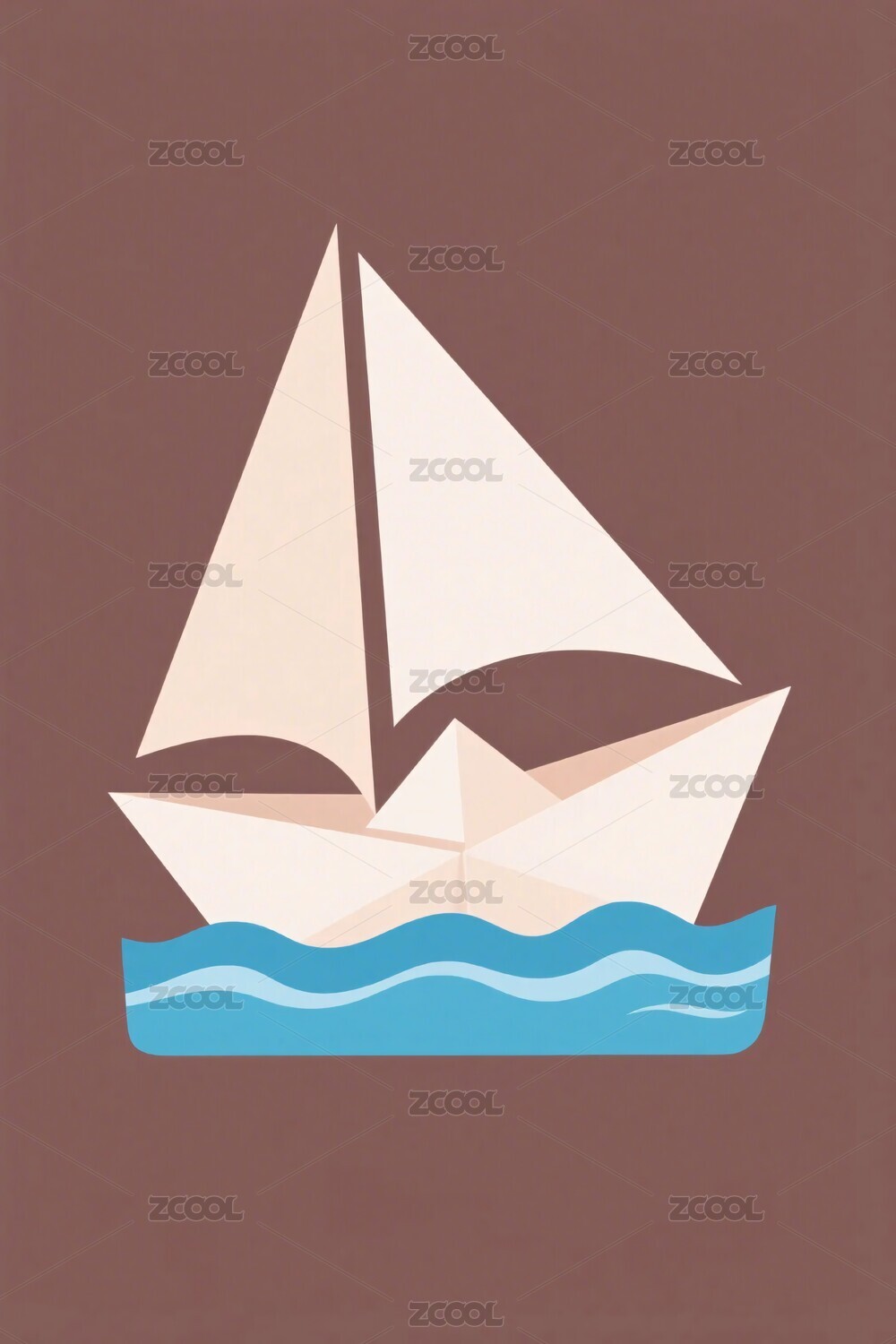 小帆船,木质,船帆,船桨,插画,卡通,图案,船只,交通工具,模板