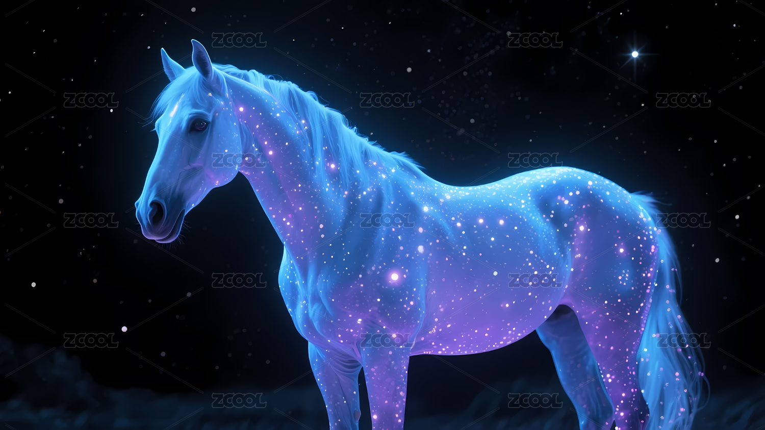 蓝色,发光,神秘,黑色,马,光效,紫色,梦幻,半透明,颗粒