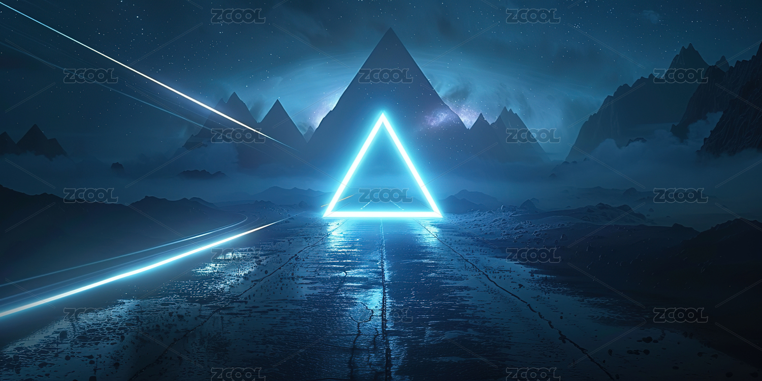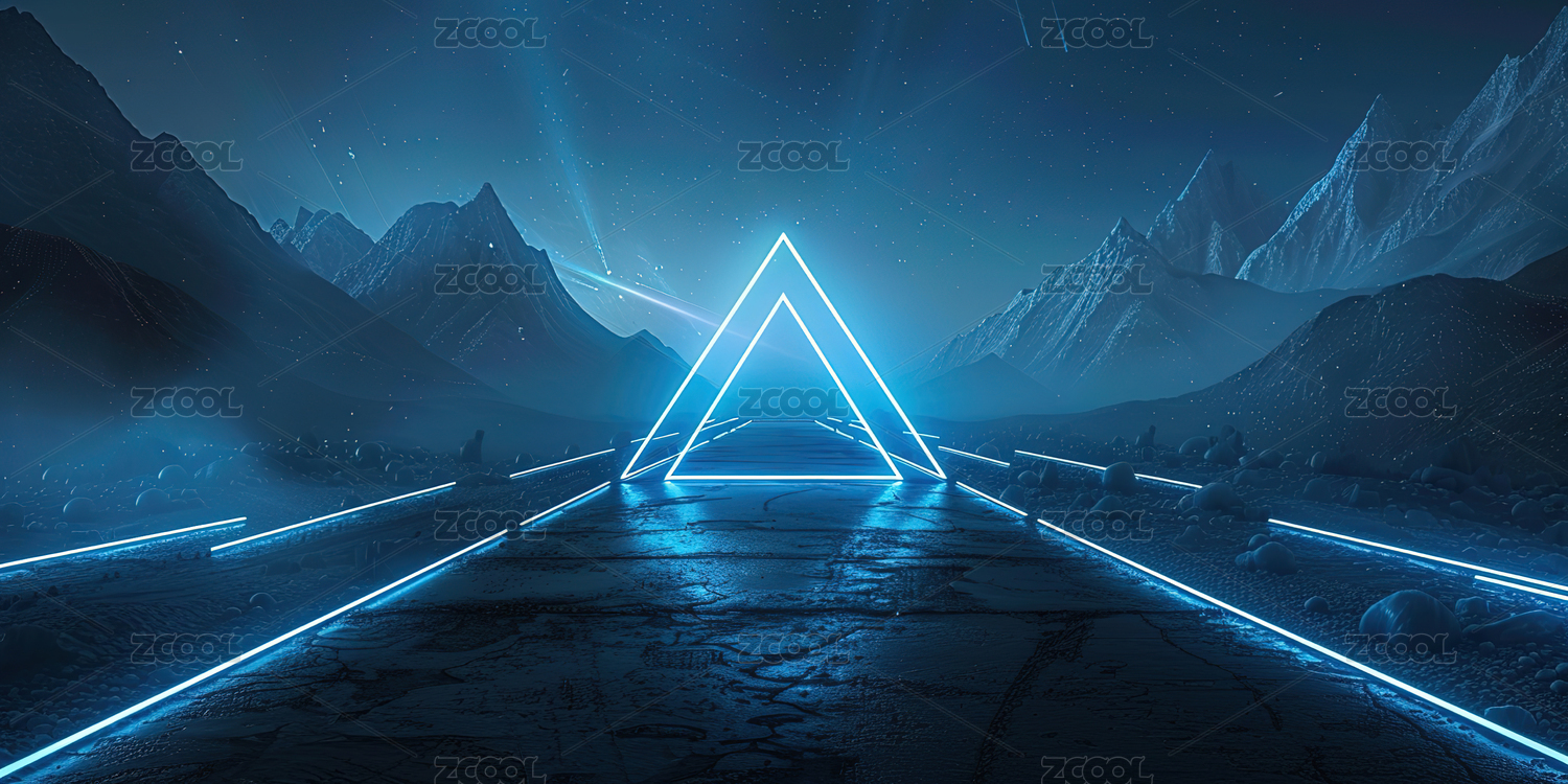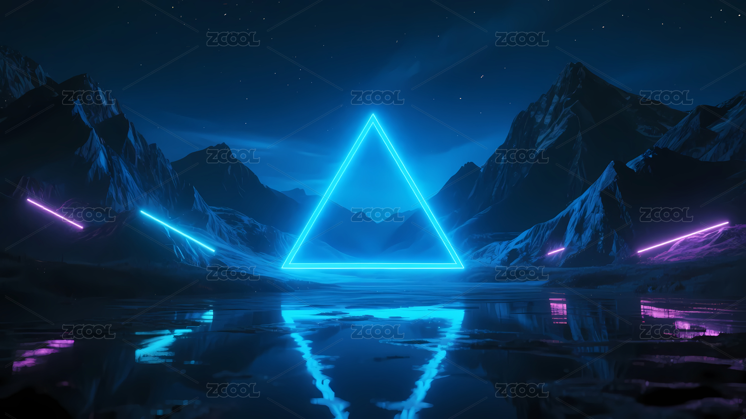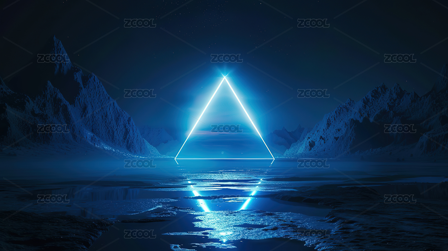 蓝色,背景,轮廓,紫色,发光,光效,三角形,山脉,冷色调,未来感