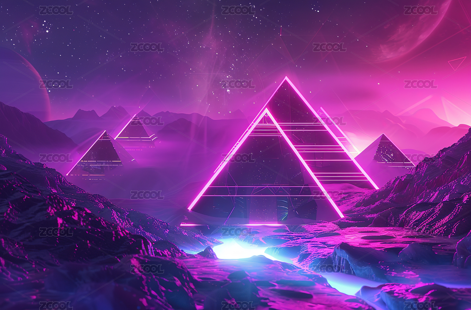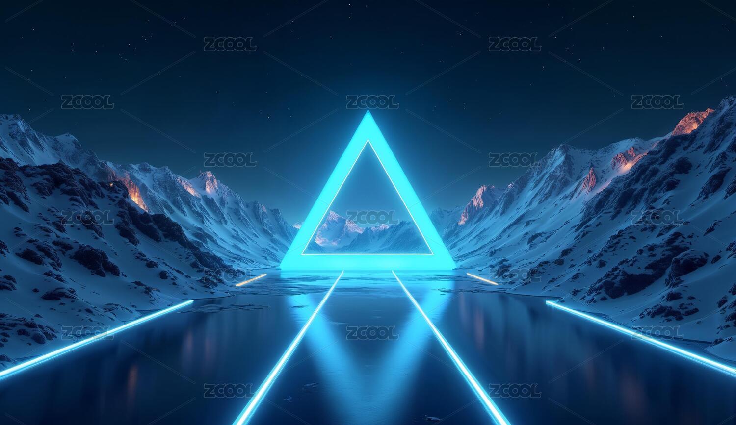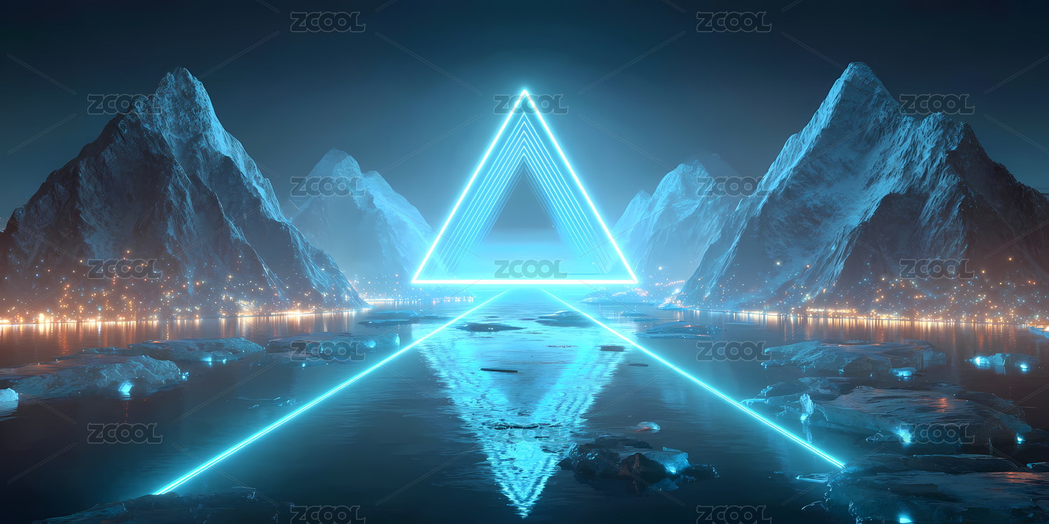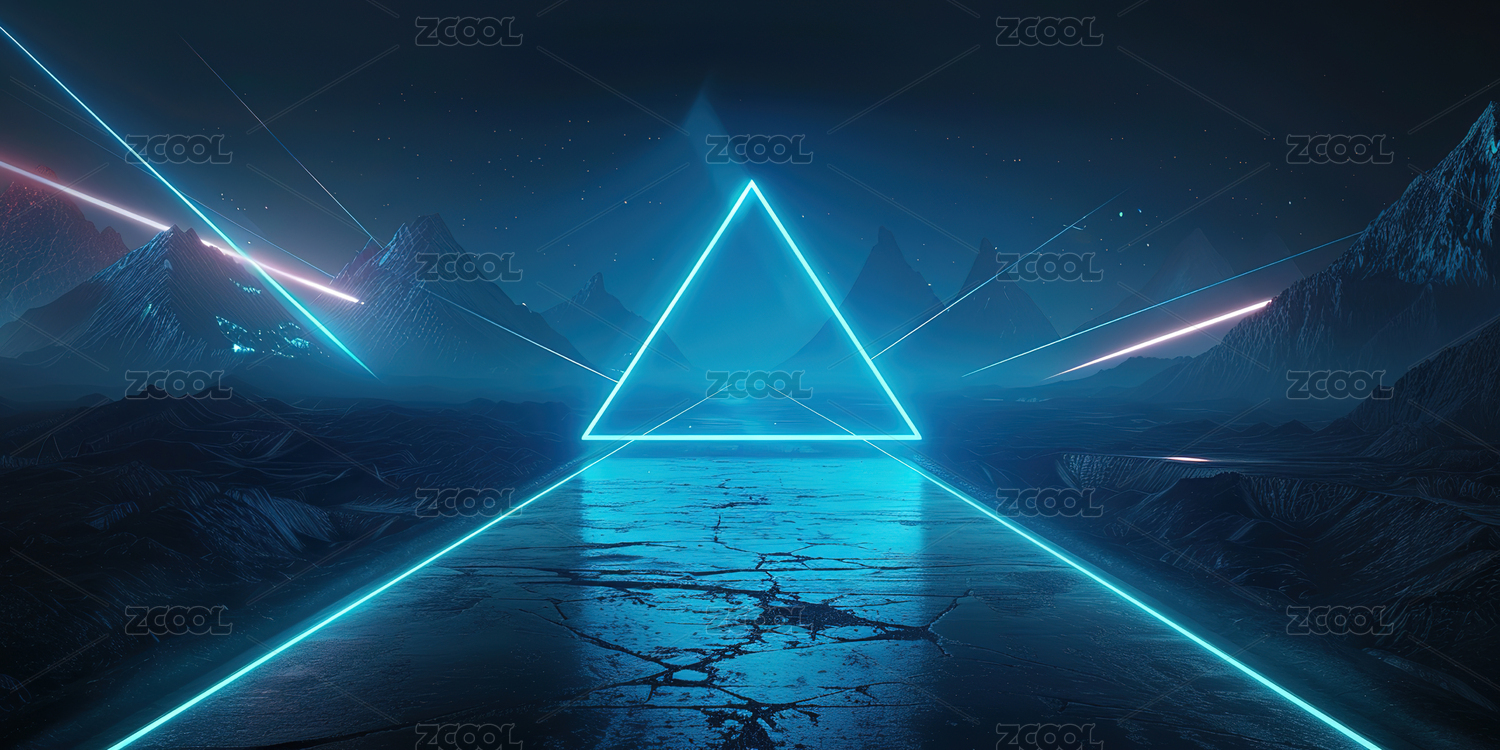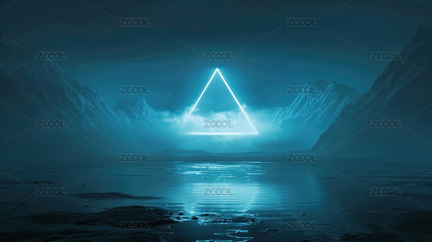 蓝色,背景,轮廓,紫色,发光,光效,三角形,山脉,冷色调,未来感