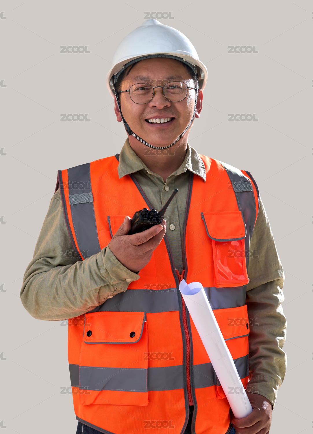 拿着图纸和对讲机的工程师
