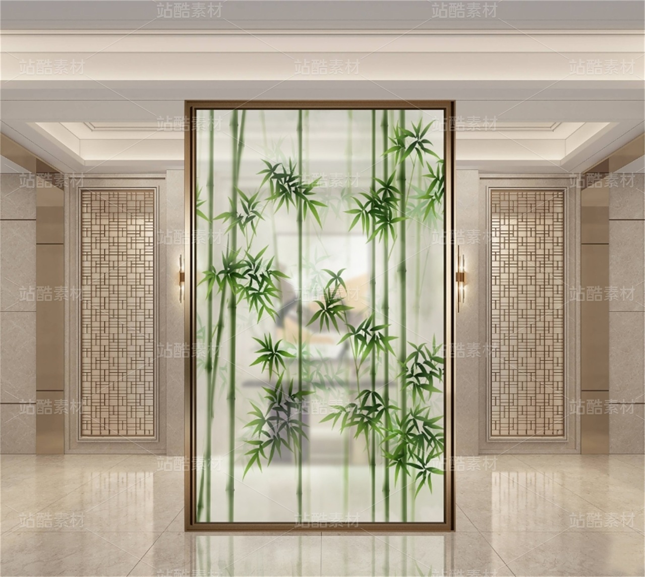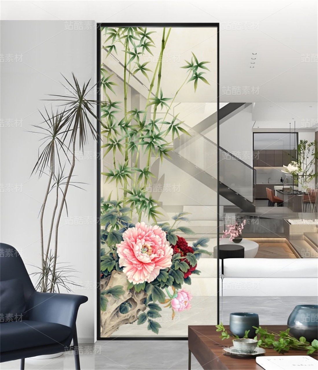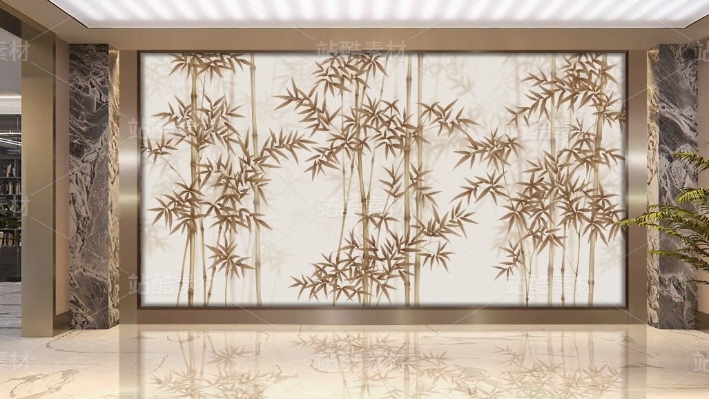 抽象竹鸟装饰画 花开富贵 国色天香 适用于家装,酒店,文化场所等,用于做:背景墙、隔断、移门,屏风、玄关。高清分层图可以用UV打印。