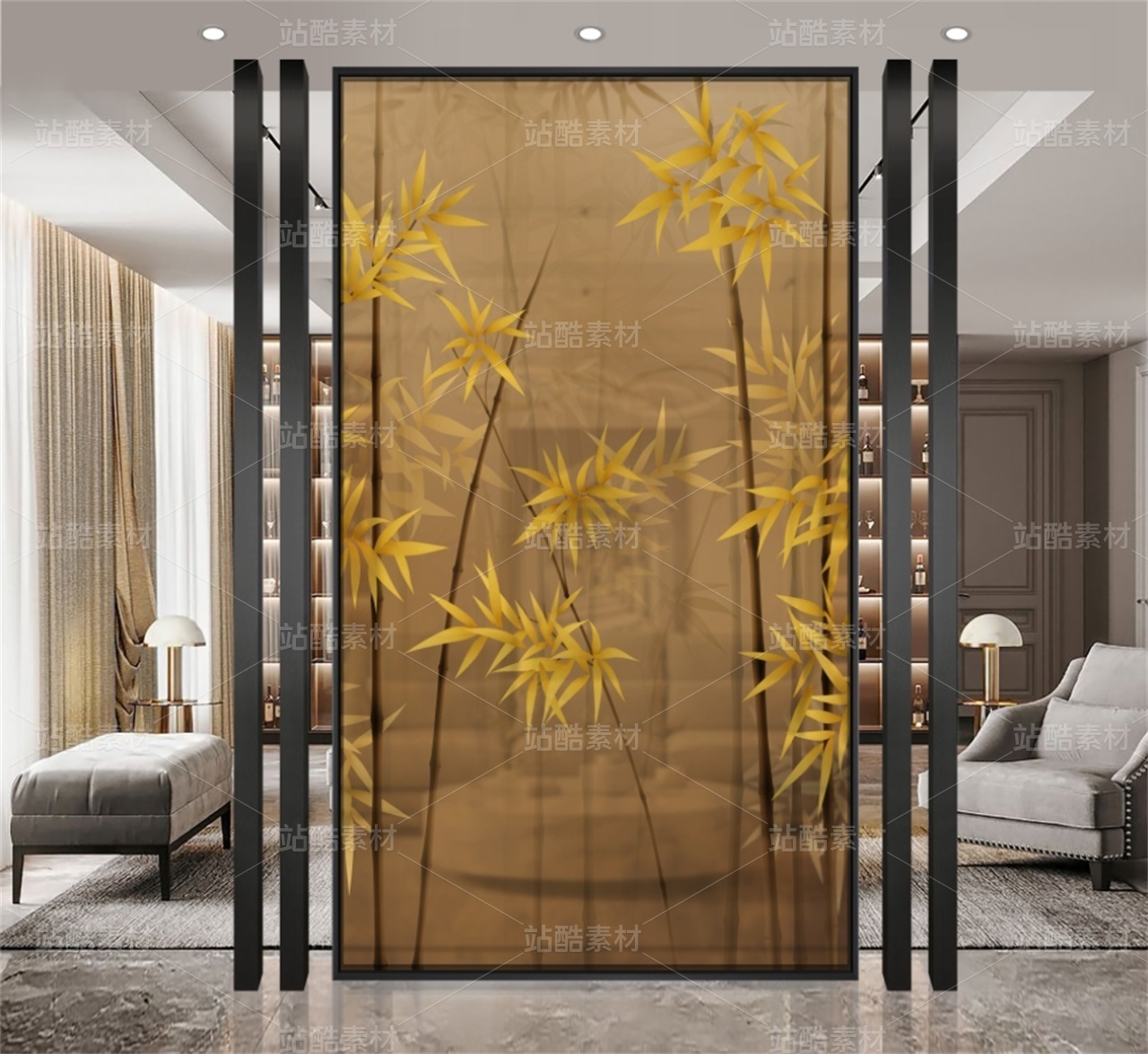 抽象黄金竹子装饰画