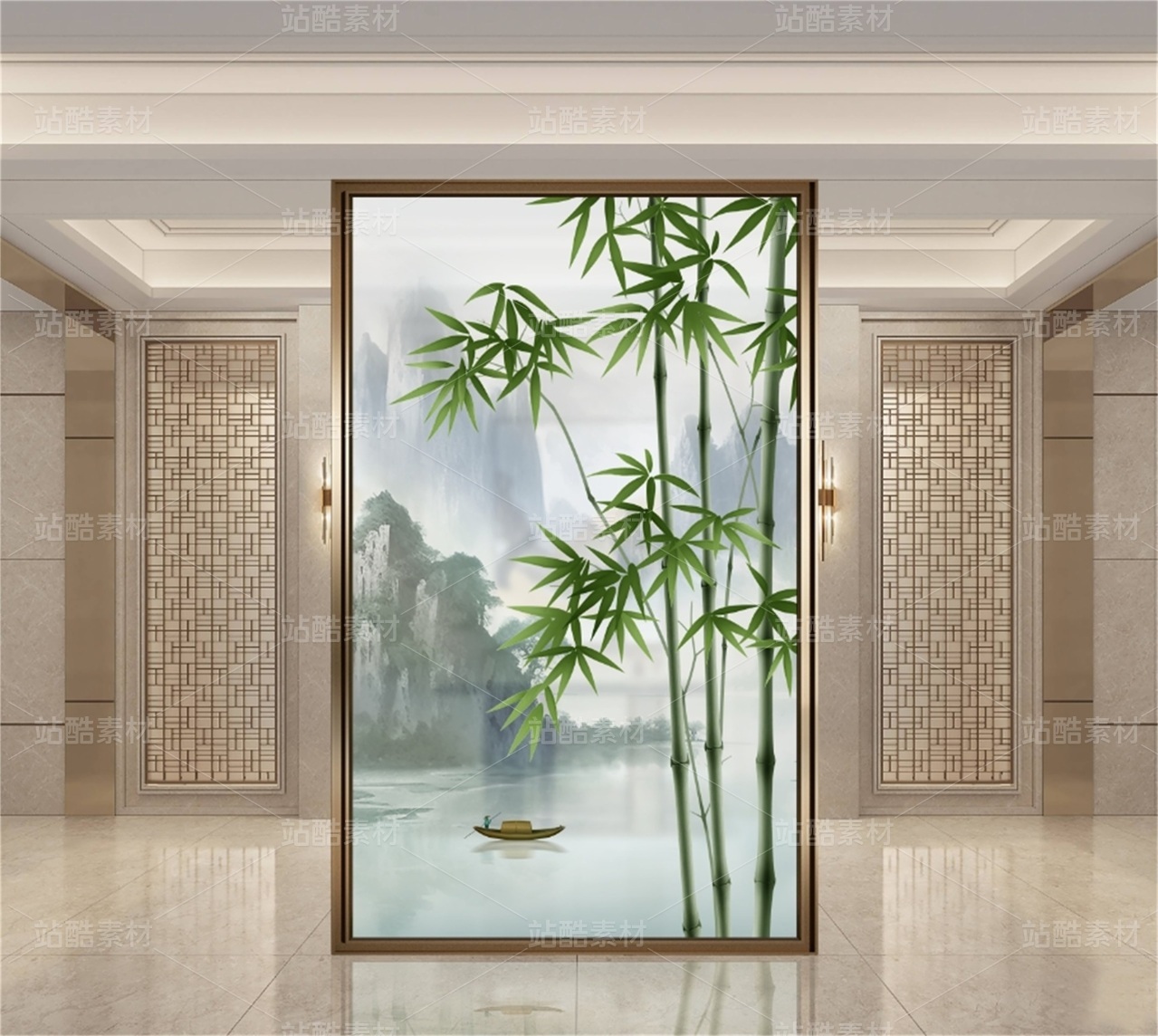 新中式竹子山水装饰画