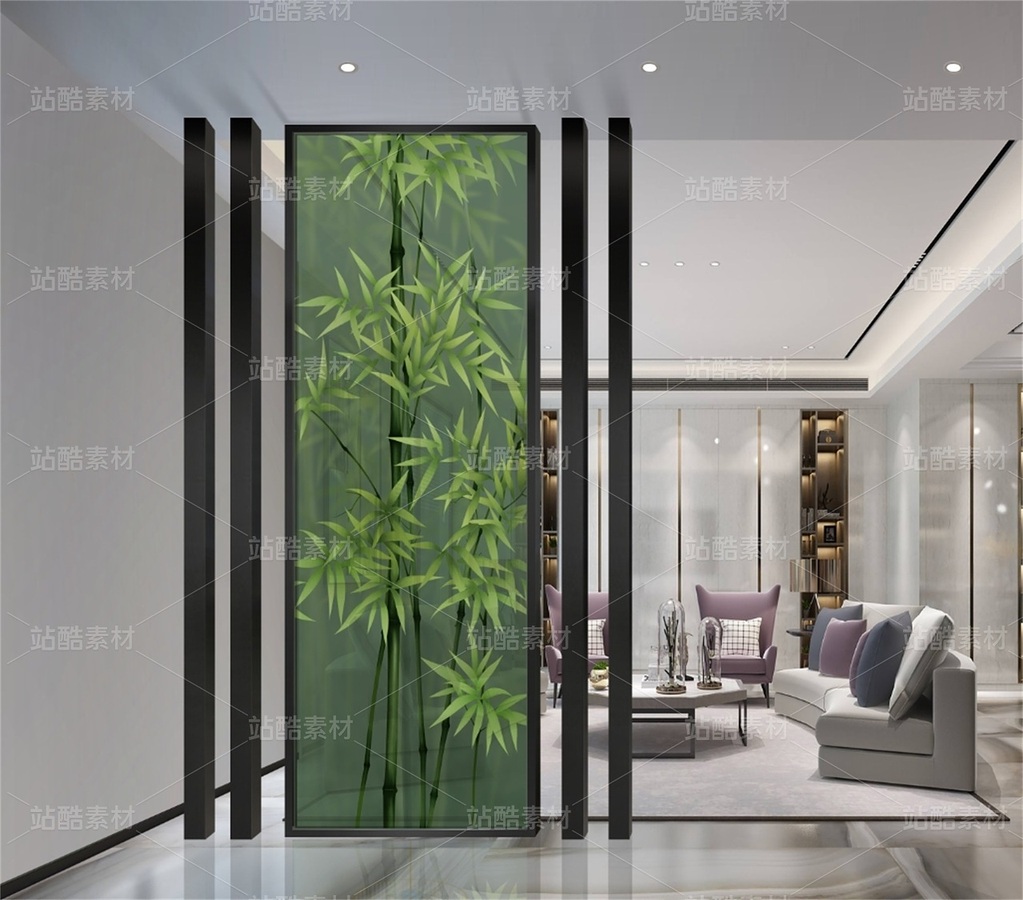 抽象竹鸟装饰画 新中式竹子画 朦胧竹子 适用于家装,酒店,文化场所等,用于做:背景墙、隔断、移门,屏风、玄关。高清分层图可以用UV打印。