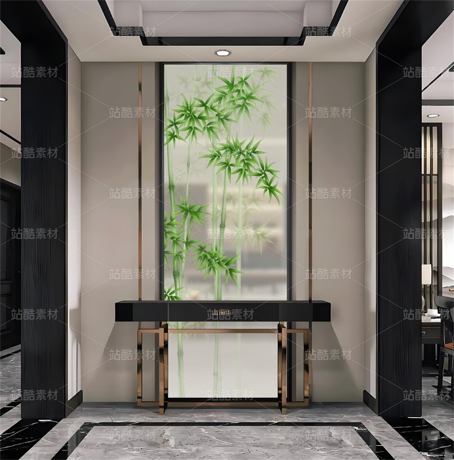 抽象竹鸟装饰画 新中式竹子画 朦胧竹子 适用于家装,酒店,文化场所等,用于做:背景墙、隔断、移门,屏风、玄关。高清分层图可以用UV打印。