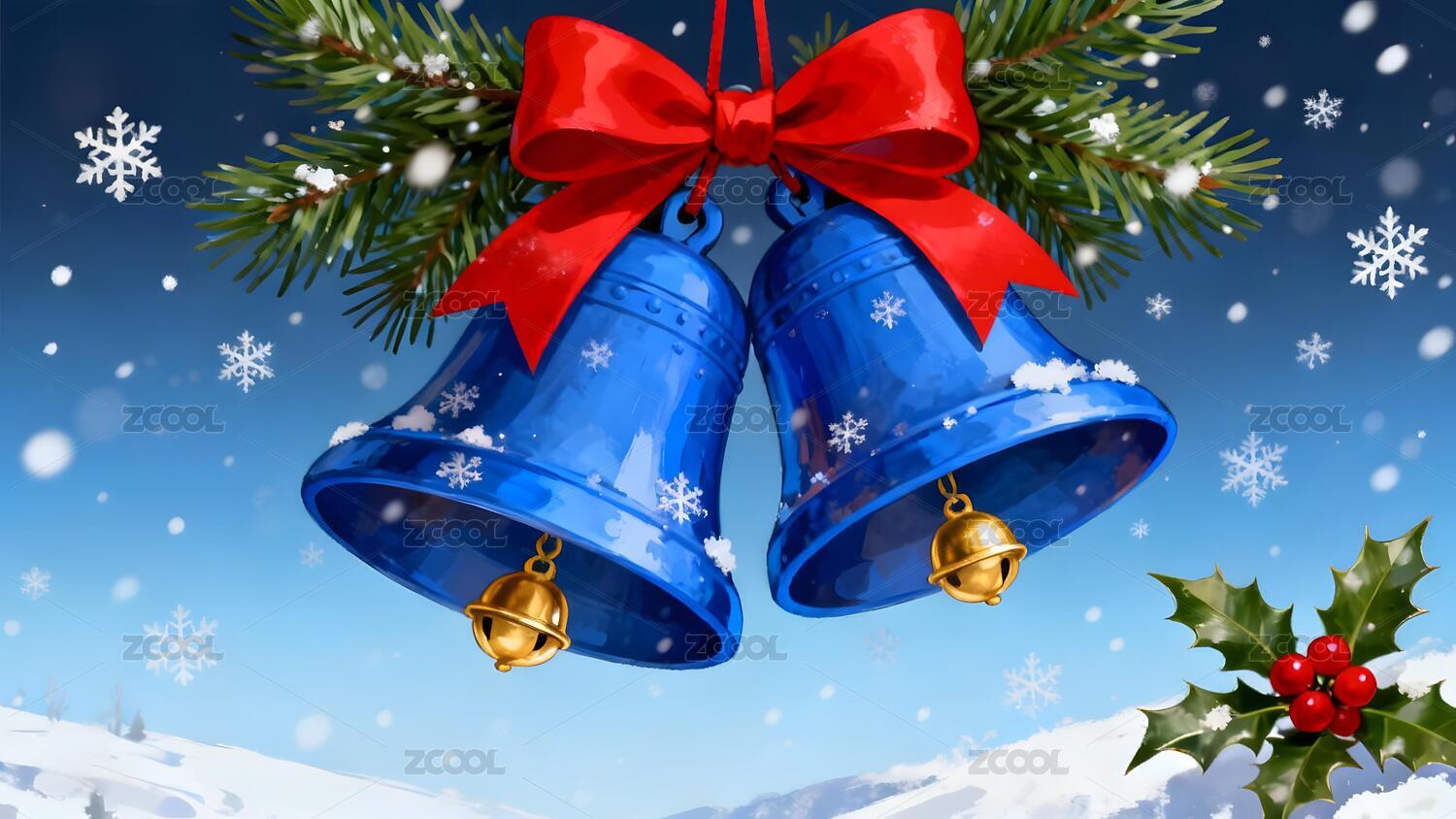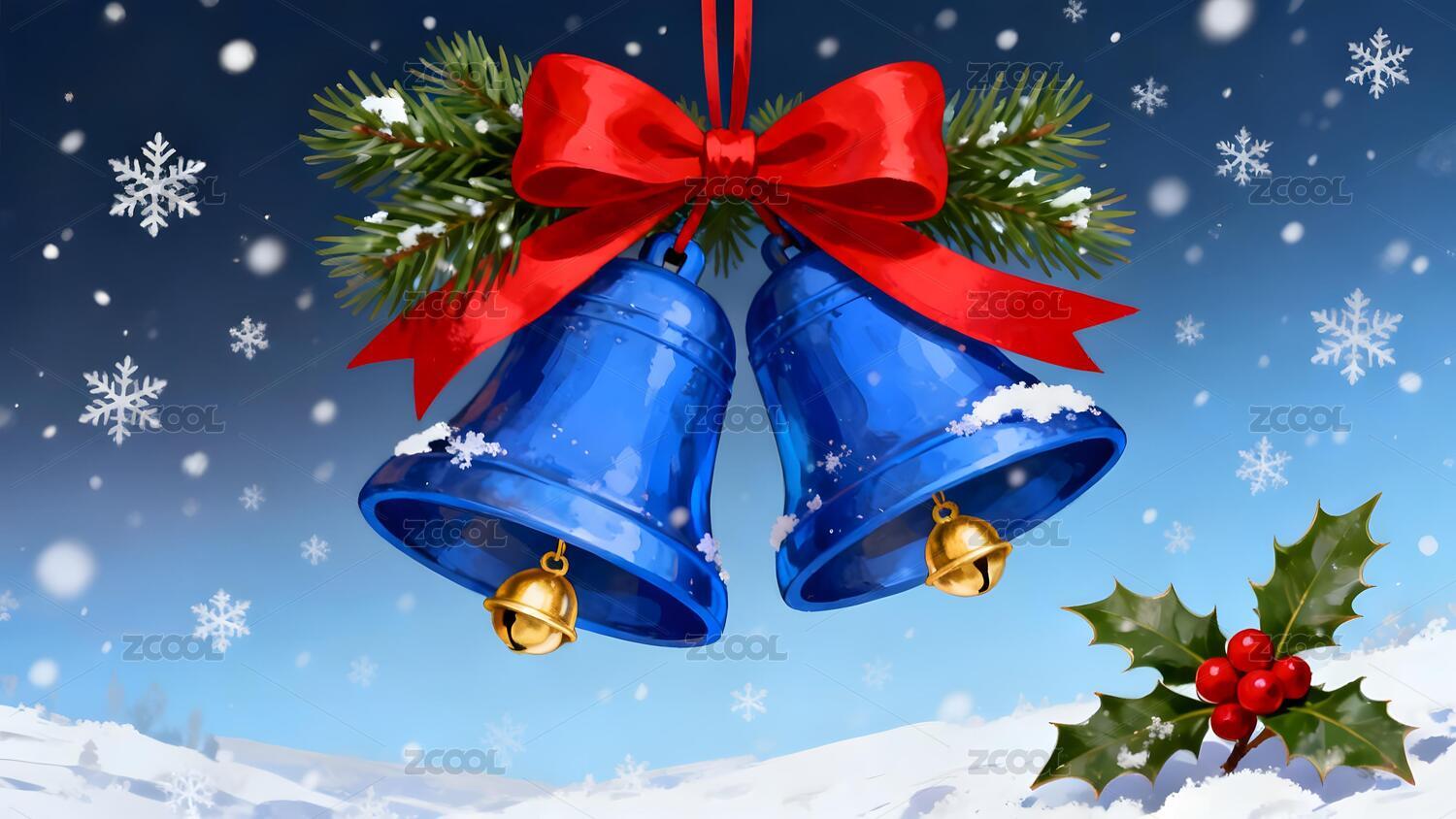 圣诞铃铛与冬日雪花装饰