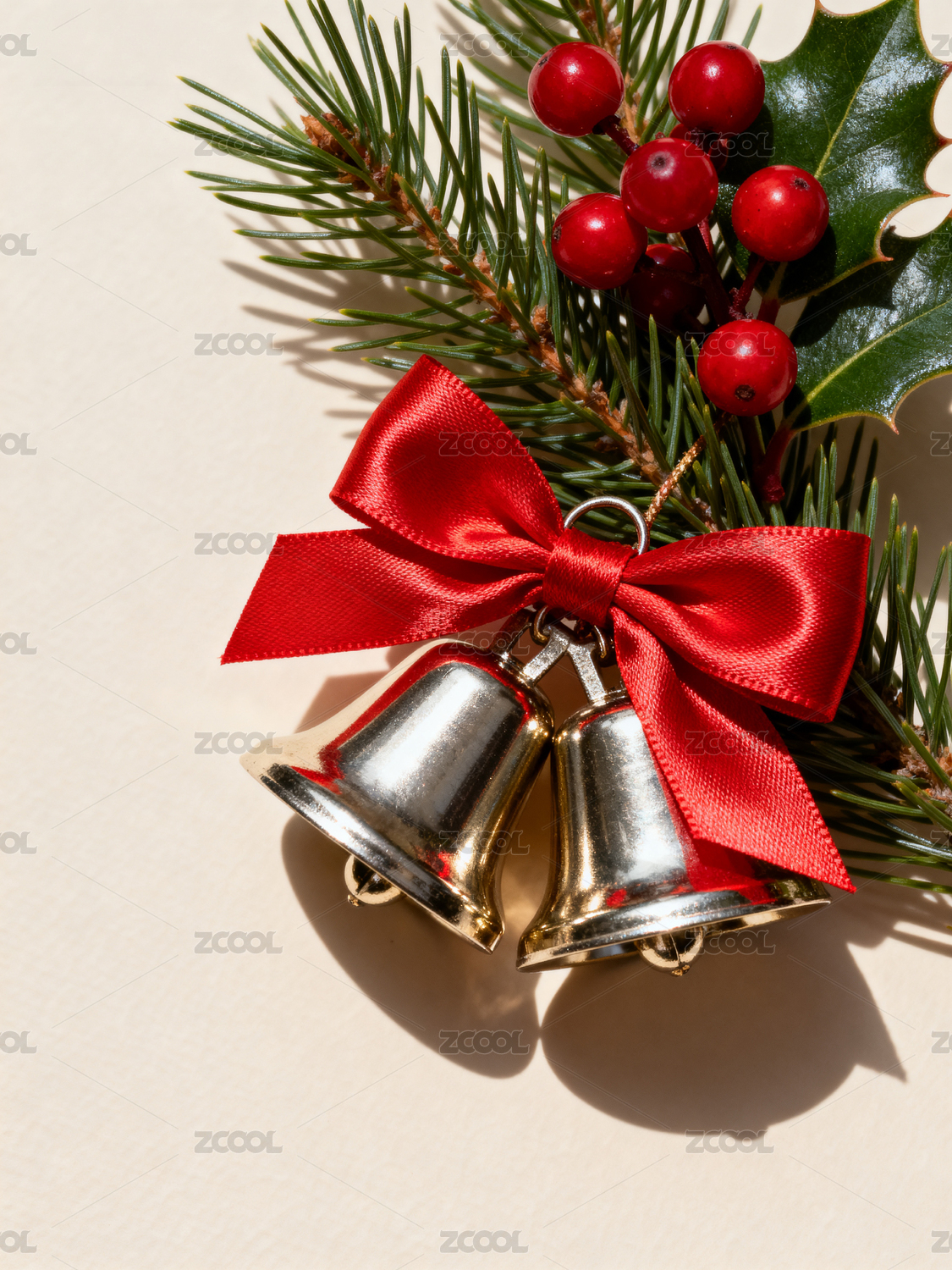 圣诞铃铛与冬青装饰