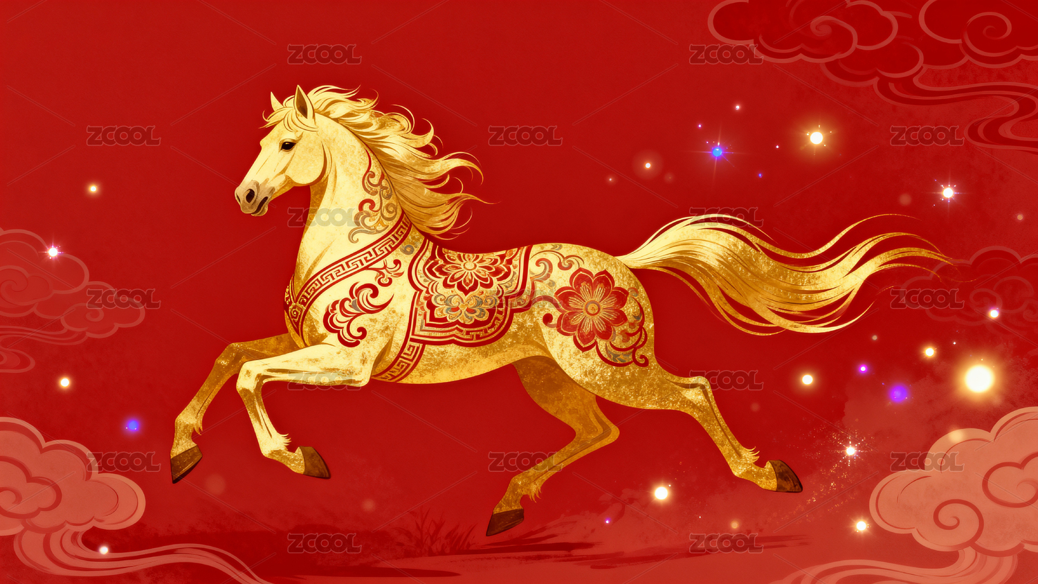 主视觉,商业,壁纸,骏马,金色,中国风,剪纸,珐琅,古建筑,牡丹