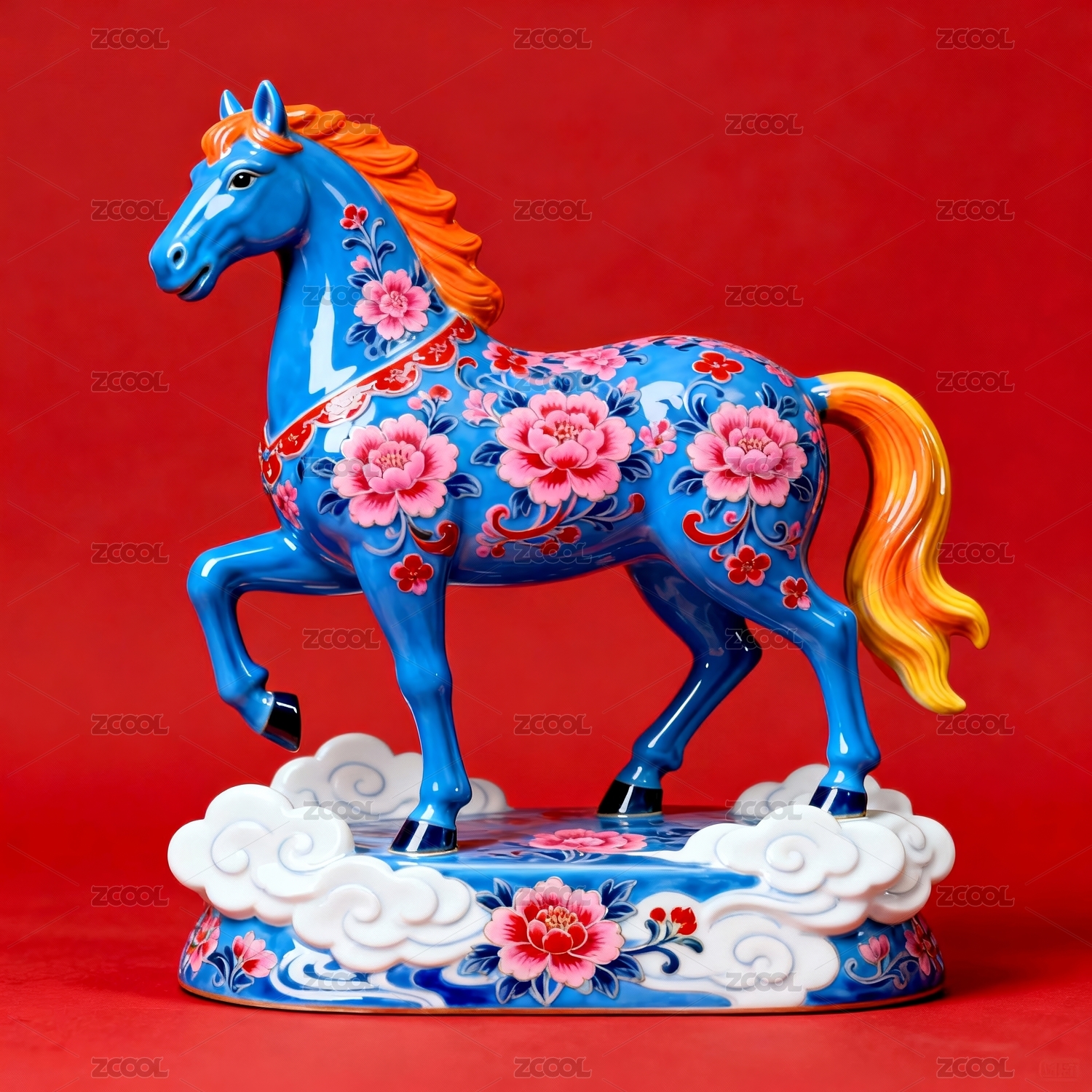 珐琅骏马国风祥云商业场景