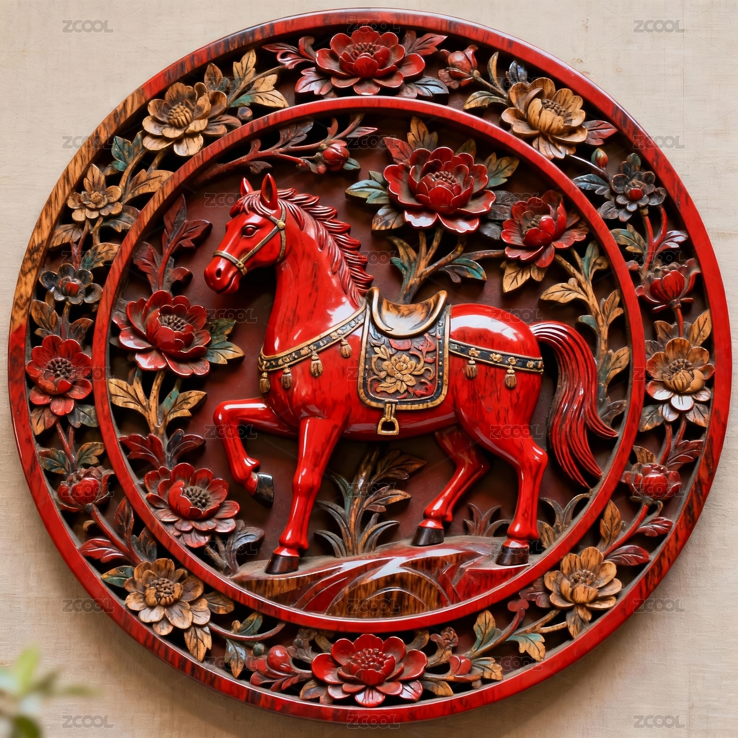 红马立体雕刻传统工艺装饰场景