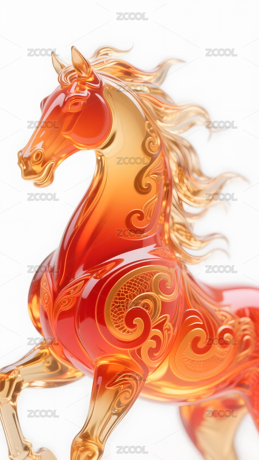 火焰纹饰的琥珀色马雕塑