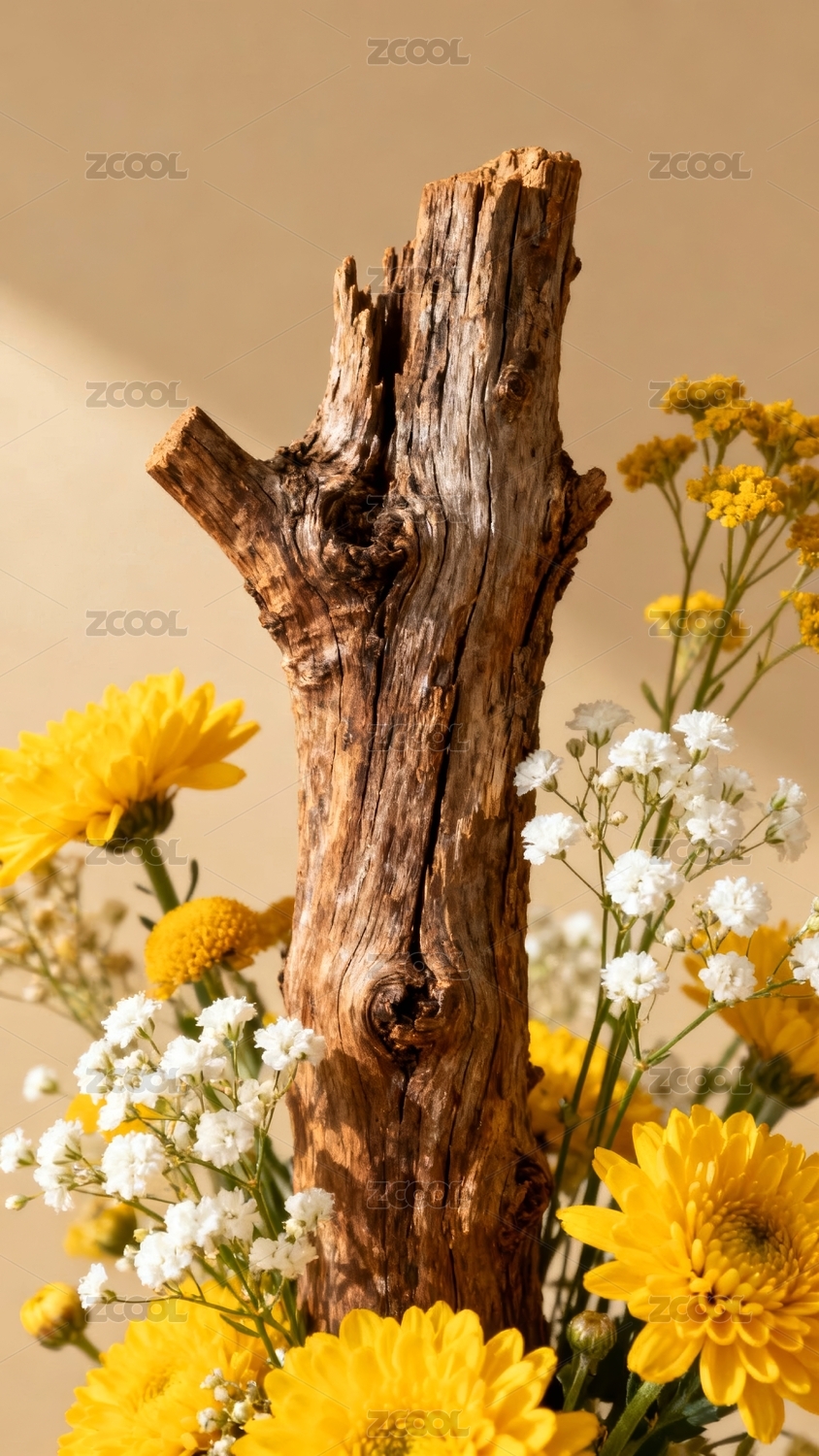 枯木花卉艺术展示背景