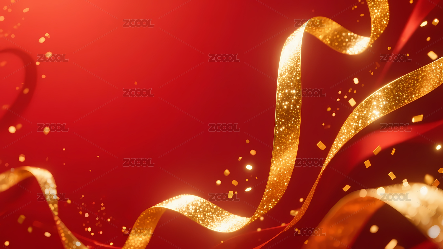 红色丝带金色光点喜庆