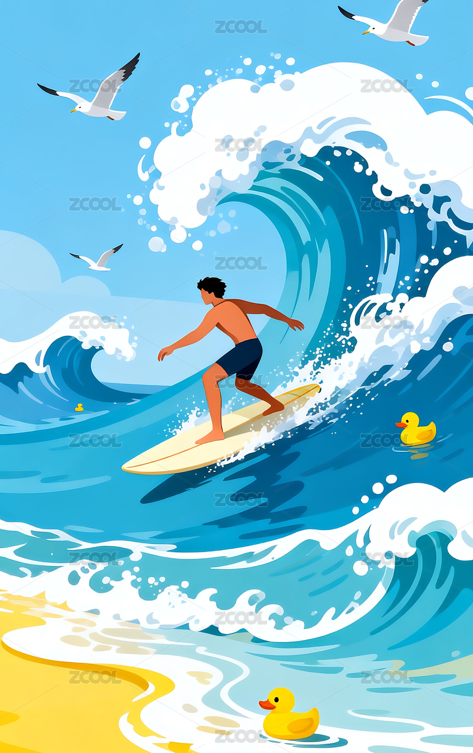 自然户外海浪冲浪插画