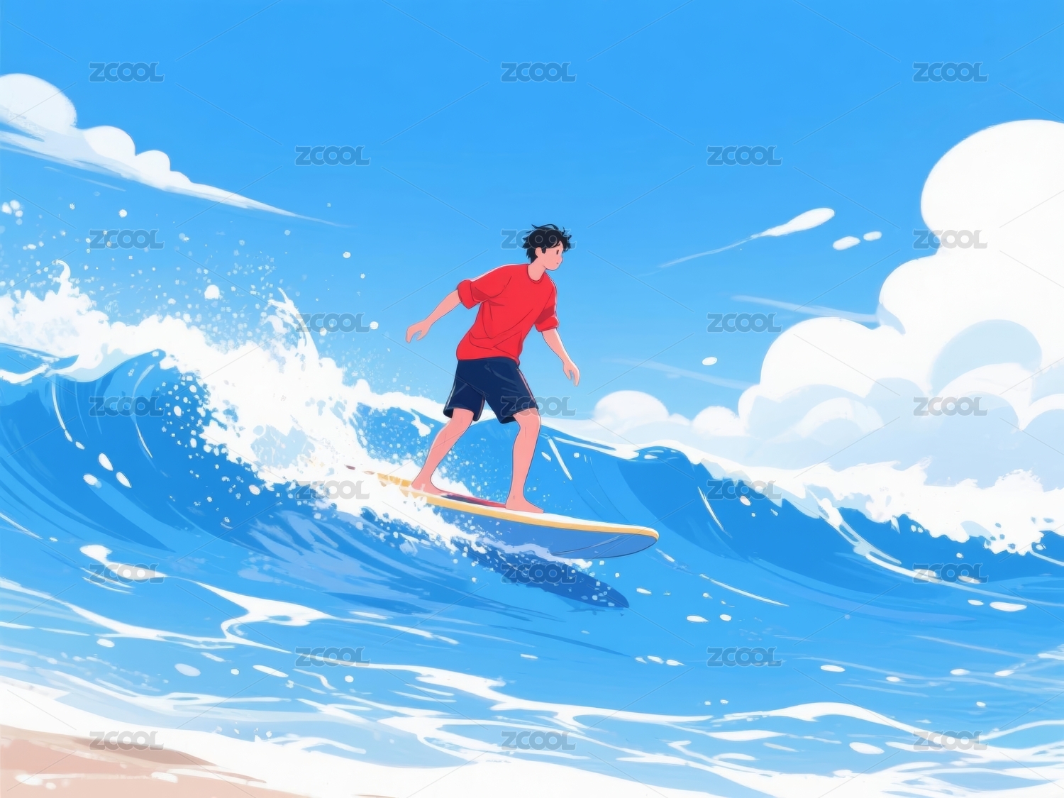 夏日冲浪少年