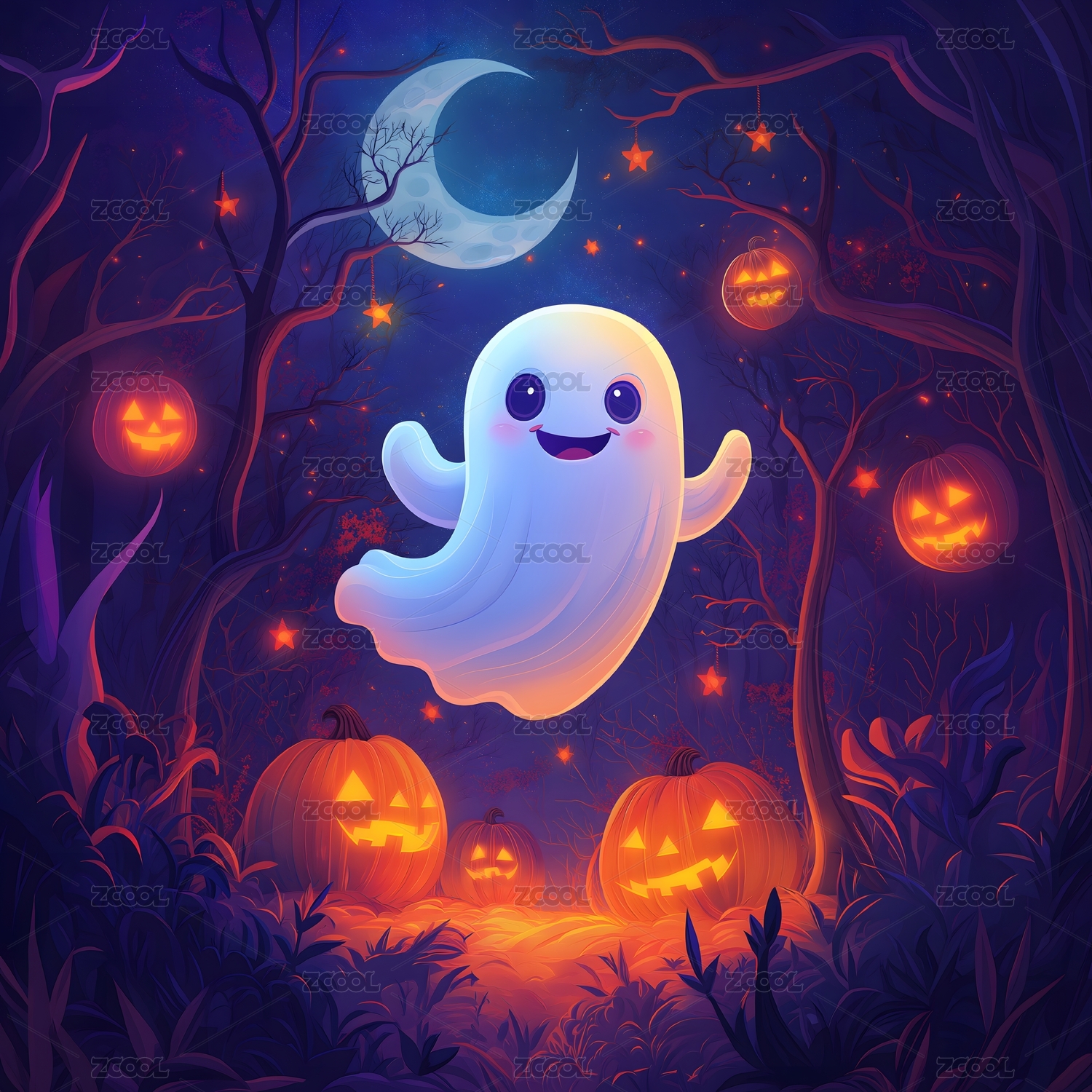 万圣夜森林幽灵南瓜显奇幻欢乐