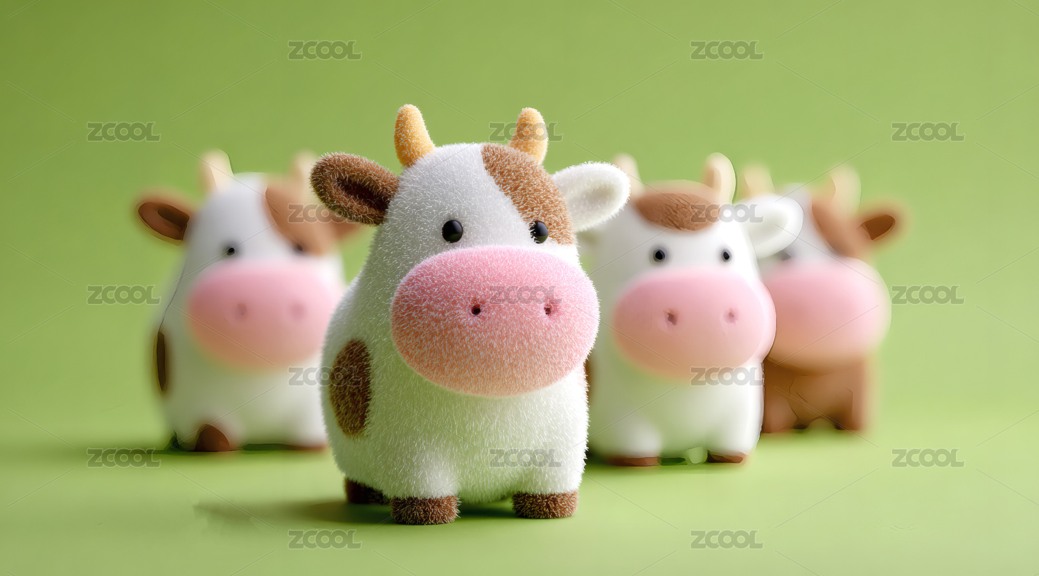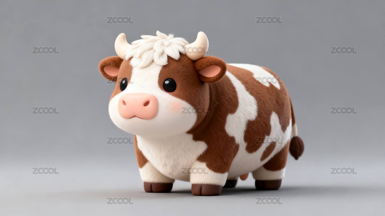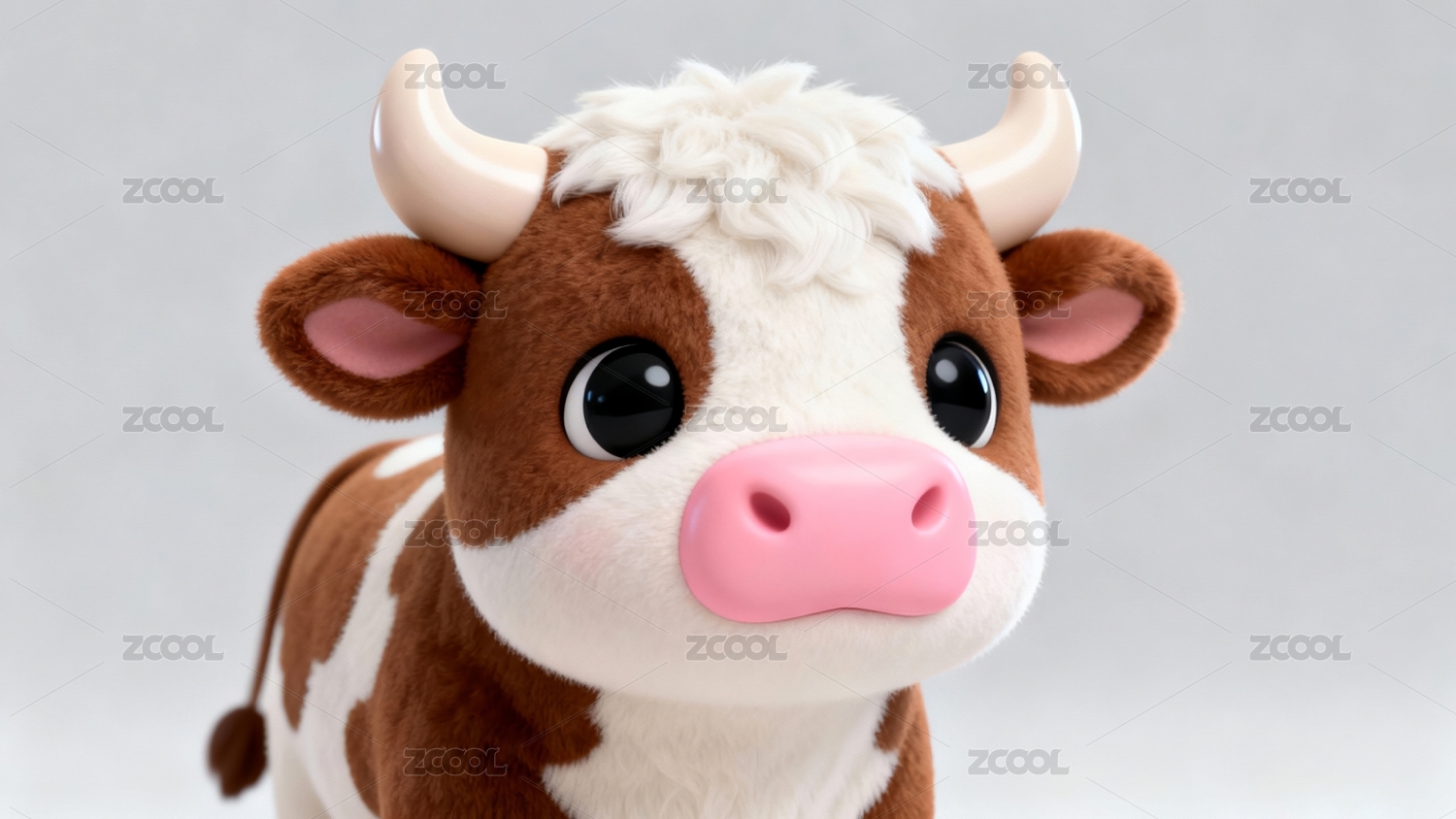 小牛,卡通,玩偶,绒毛,圆圆,棕角,粉颊,软萌,治愈,可爱