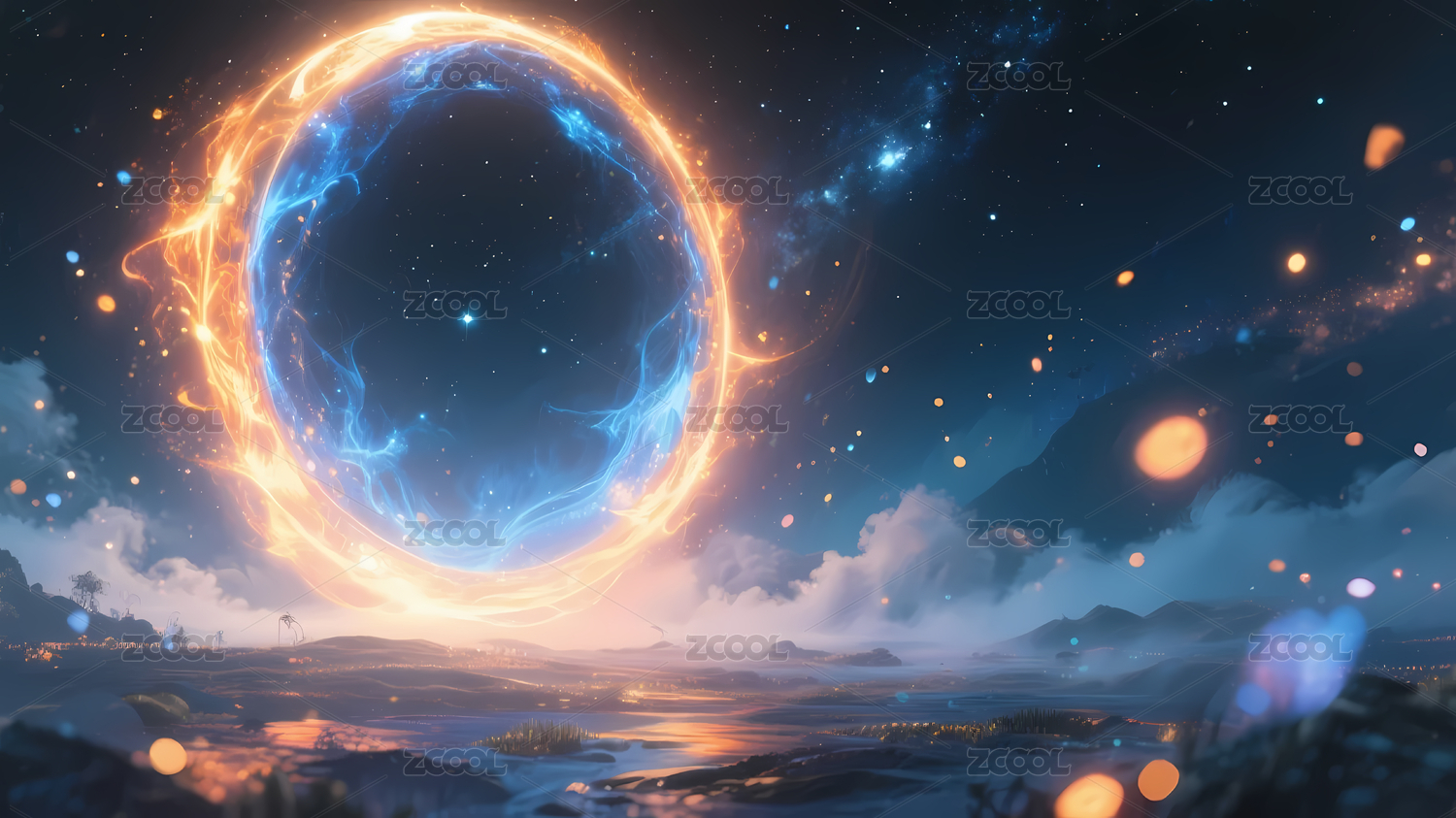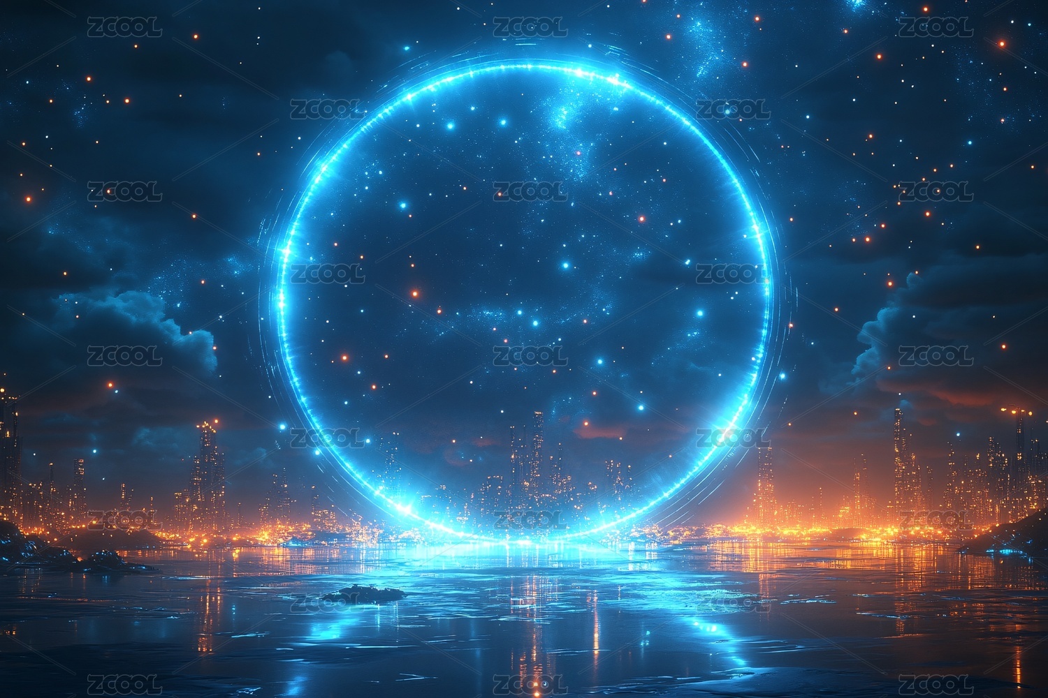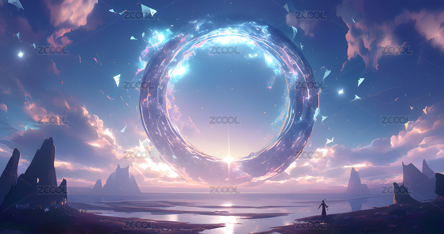海面,发光,圆环,蓝色云海,神秘,光环,天空,海洋,光影,水天一色